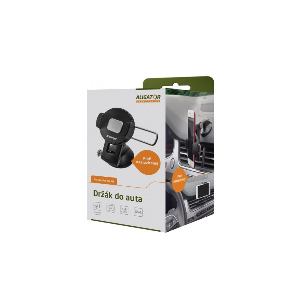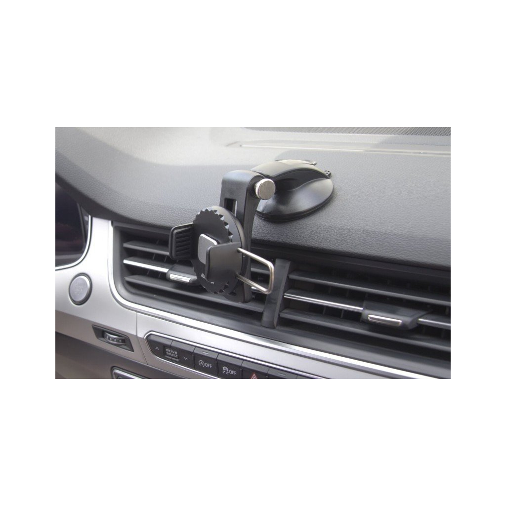 Univerzálny držiak s automatickým upevnením mobilného telefónu na ovládanie jednou rukou. Vďaka špeciálnemu mechanizmu sa prítlačné čeľuste držiaka po vložení telefónu automaticky zovrú, čím sa zabezpečí presné a bezpečné uchytenie. Mobilný telefón možno otáčať o celých 360°. Držiak je obzvlášť vhodný na umiestnenie na palubnú dosku vďaka integrovanej nanopodložke, ktorá zabezpečuje dokonalú priľnavosť k nerovným povrchom bez použitia lepidla. Samozrejme, možno ho umiestniť aj na čelné sklo.Kľúčové vlastnosti: