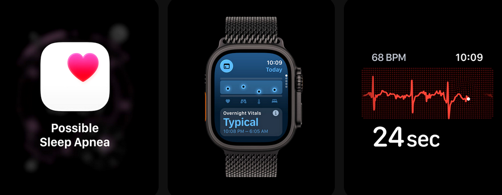Apple Watch Ultra 3 prinášajú najpokročilejšie zdravotné funkcie – po novom vedia upozorniť na chronický vysoký krvný tlak, strážia známky spánkového apnoe, umožňujú meranie EKG a saturácie kyslíkom, sledujú kvalitu spánku aj menštruačný cyklus a vďaka inovatívnym snímačom vám dávajú prehľad o srdci, dýchaní aj celkovom zdraví.