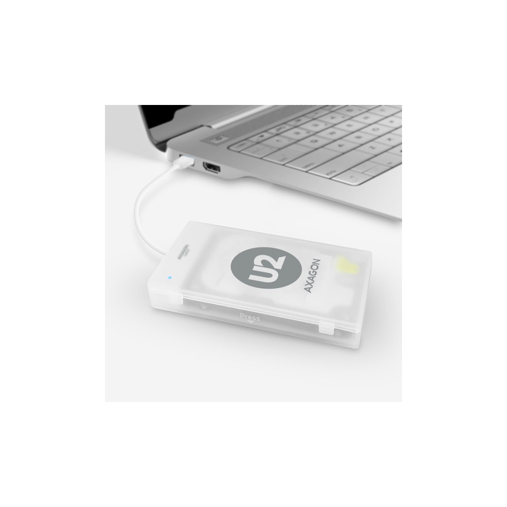 Kompaktní adaptér AXAGON ADSA-1S SLIMport s USB 2.0 rozhraním určený pro snadné připojení 2.5" SATA disku.Šikovný pomocník pro rychlé připojení notebookového disku včetně podpory bootování. Užitečný nástroj pro migraci dat při náhradě pevného disku za SSD disk v notebooku.