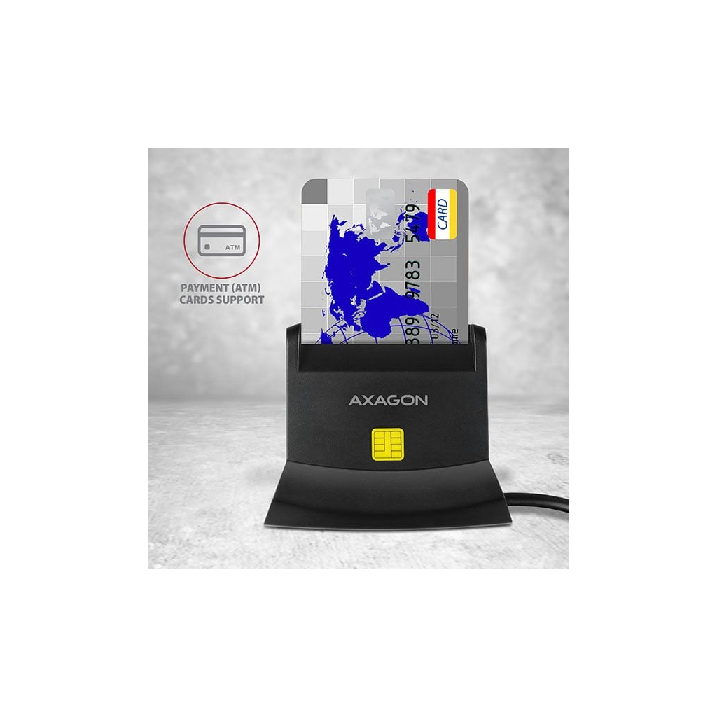 CRE-SM2 4-slotová čítačka čipových karietSamostatná stolová čítačka čipových kariet / identifikačných kariet AXAGON CRE-SM2 USB 2.0 obsahuje ďalšie sloty pre karty SD, microSD a SIM. Čítačka podporuje všetky bežné formáty čipových kariet, čipových kariet a iných kontaktných kariet vrátane bankových platobných kariet. Čítačka je plne kompatibilná s aplikáciou eObčanka.