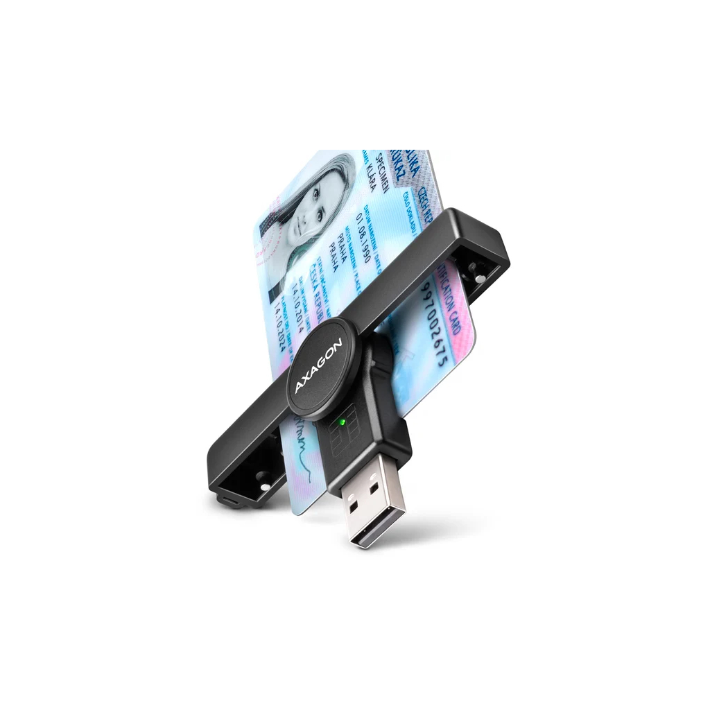 Skladacia čítačka čipových kariet AXAGON CRE-SMPA PocketReader s rozhraním USB-A 480Mbps. Je vhodná najmä ako čítačka identifikačných kariet na použitie s notebookmi, ktoré majú vstup USB-A. Najrozšírenejší konektor USB-A zabezpečuje pripojenie k novým aj starším počítačom.Čítačka kariet podporuje všetky bežné formáty kontaktných čipových kariet, čipových kariet a iných kariet vrátane kontaktných bankových platobných kariet alebo kontaktných elektronických identifikačných kariet. Čítačka je plne kompatibilná s eObčankou (CZ) alebo eID klientom (SK).