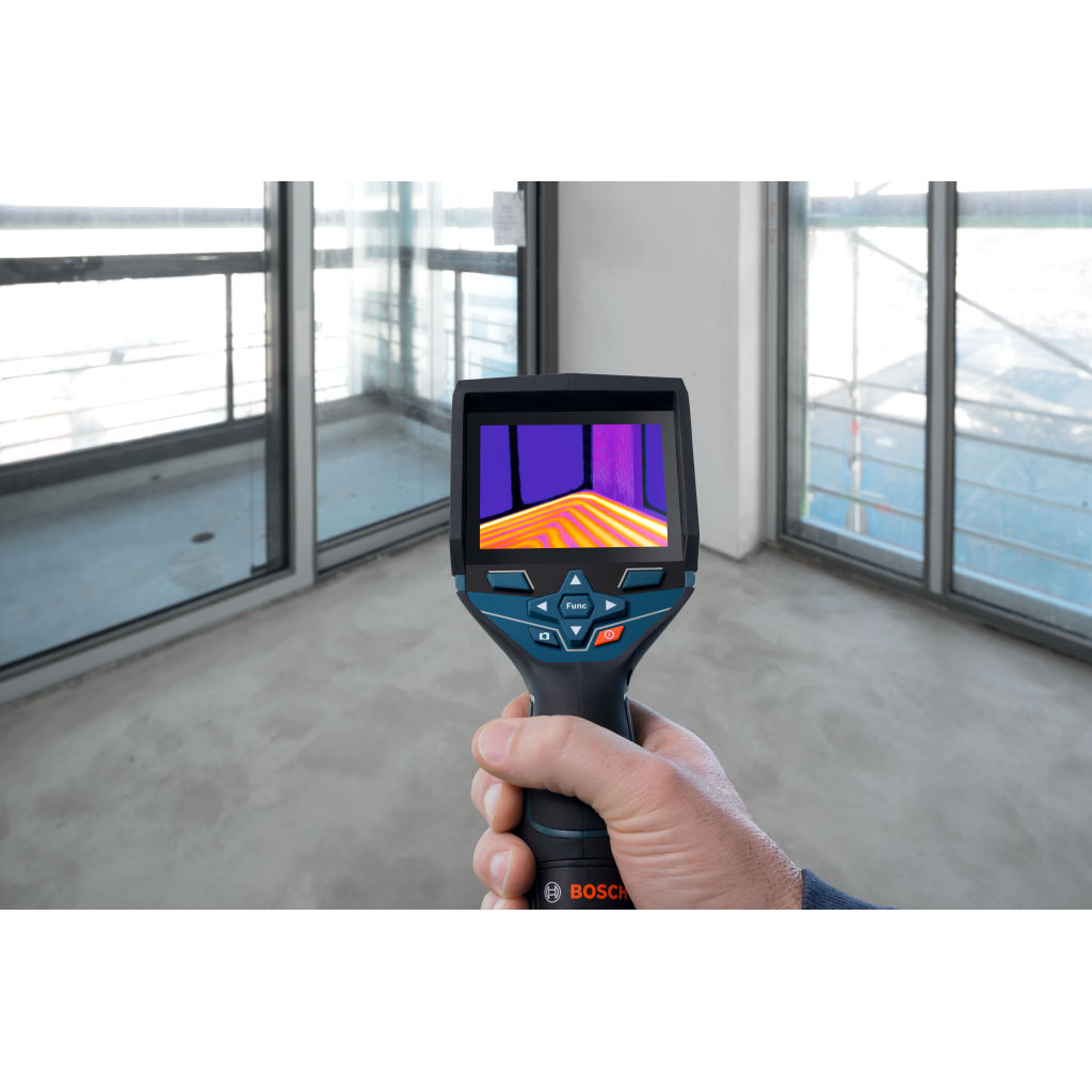 Termokamera Bosch GTC 400 C Professional umožňuje meranie a vizualizáciu teplotných rozdielov v priebehu niekoľkých sekúnd a jednoduchý záznam výsledkov. Aplikácia Bosch Thermal umožňuje dokumentáciu a rýchly prenos nameraných hodnôt. Inteligentná technológia obrázka v obrázku prekrýva detailné reálne snímky a termosnímky (19 200 pix), čím sa získava vysokokvalitný obraz umožňujúci jednoznačnú lokalizáciu teplotných rozdielov. Systém duálneho napájania – možnosť napájania akumulátorom 12 V Li-ion alebo štandardnými alkalickými batériami. Ideálne na kontrolu izolácií, vykurovacích systémov, prúdenia tepla a vyhľadávanie prehriatych komponentov. Inteligentný prístroj GTC 400 C Professional je vynikajúcou pomôckou na podporu rozličných profesií v každej fáze projektov: od konzultácií so zákazníkom s jednoduchou prezentáciou snímok situácie až po prípravné práce, napr. kontrolu vedenia rozvodov či prípravu projektovej dokumentácie a dokonca nadväzujúce práce. Tento merací prístroj sa nesmie používať na zdravotnícke účely.