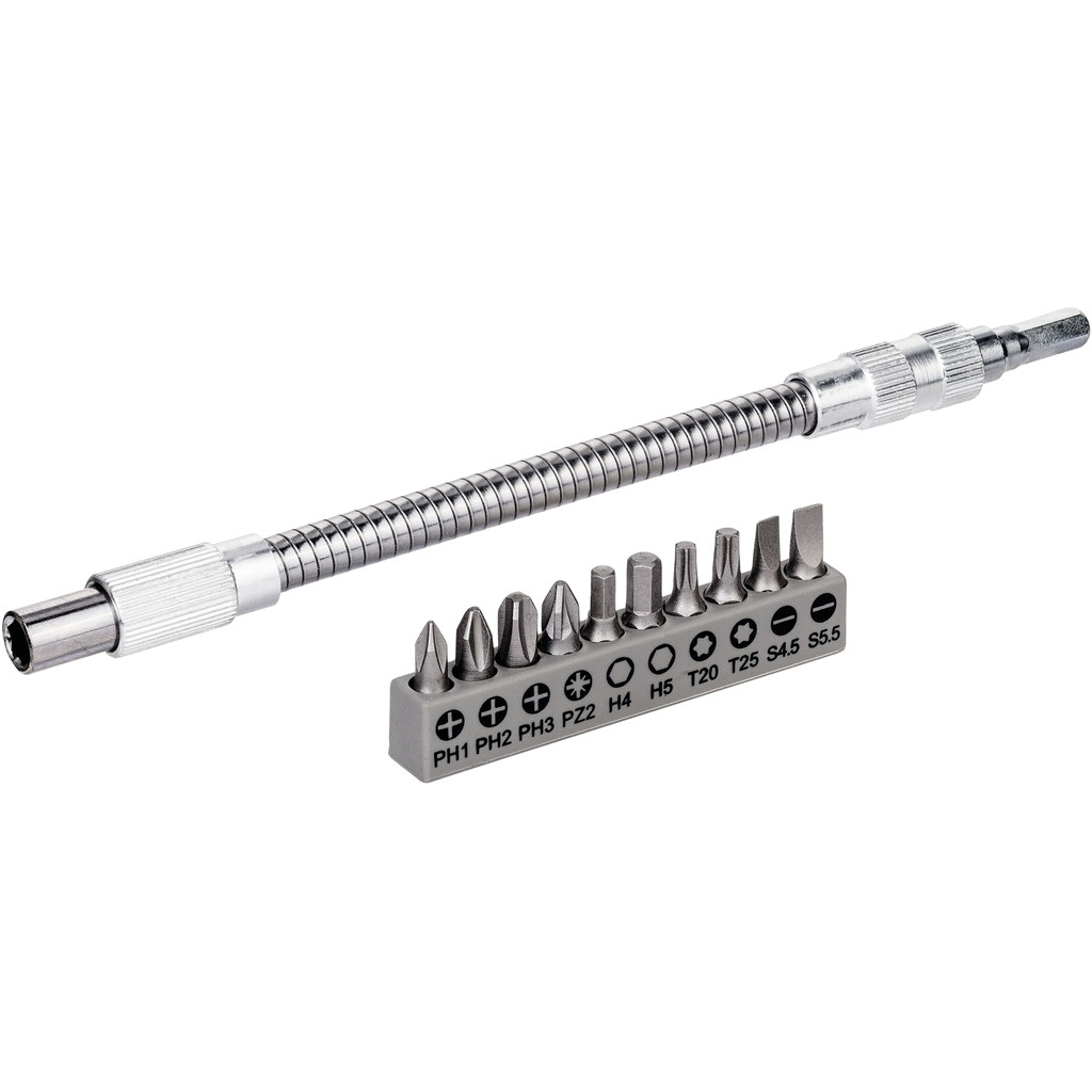 Flexibilný predlžovací nadstavec Súprava obsahuje 10 skrutkovacích hrotov:PH 1/2/3