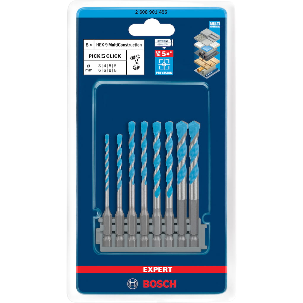 Bosch Sada vrtákov Pick&Click EXPERT HEX-9 MultiConstruction, 3/4/5/5/6/6/8/8 mm, 8 ks + DARČEK Delta Plus Zátky do uší 1 pár CONIC001