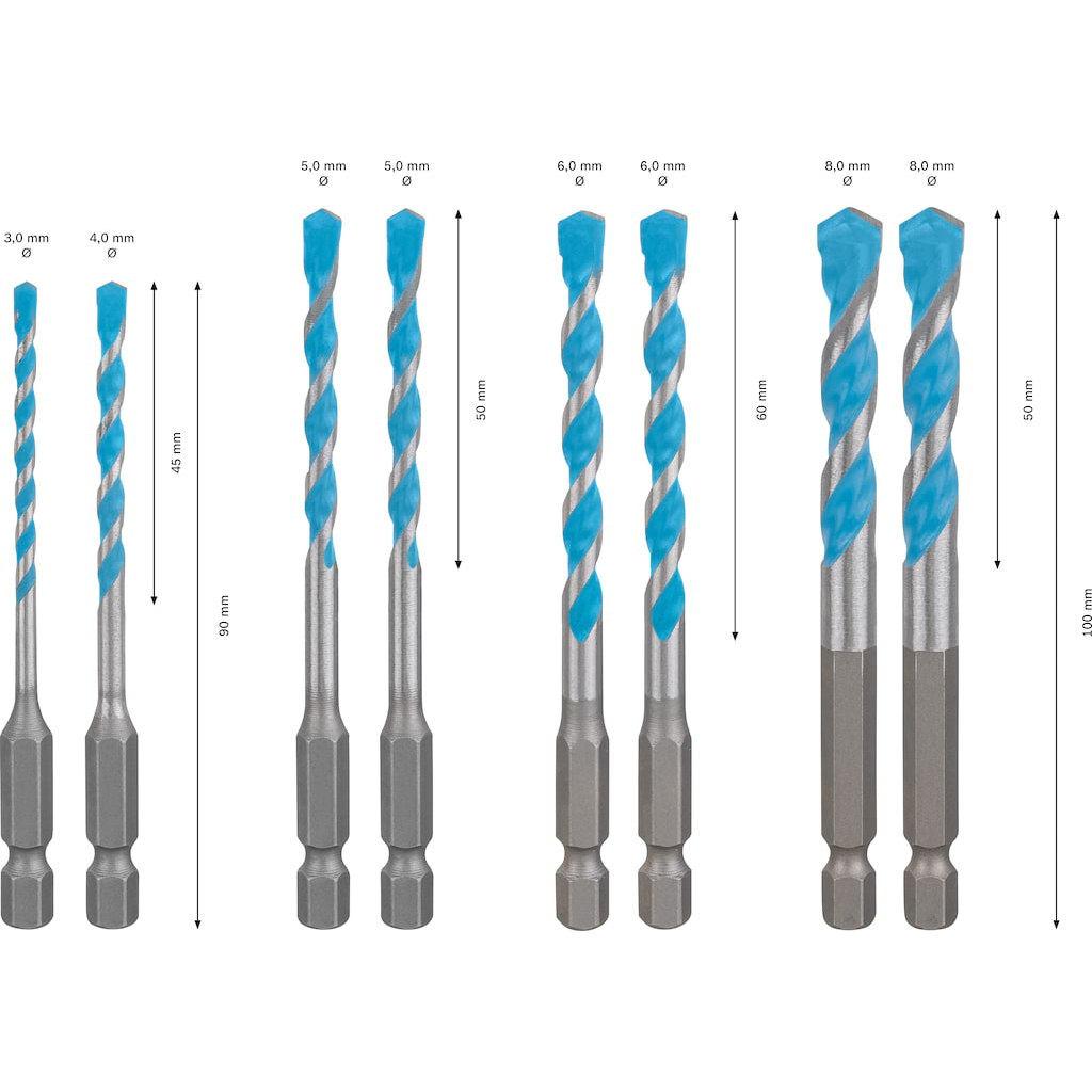 Vrtáky Bosch EXPERT HEX-9 MultiConstruction sú vrtáky, ktoré by ste mali mať vždy po ruke: nikdy sa pri práci nezaseknete ani nemrháte časom hľadaním vrtáka, aký potrebujete. Táto sada sa dodáva v plastovom držiaku, ktorý môžete zacvaknúť do kufríka Pick and Click, aby ste si mohli bezpečne uložiť vrtáky a prispôsobiť svoj kufrík s náradím.