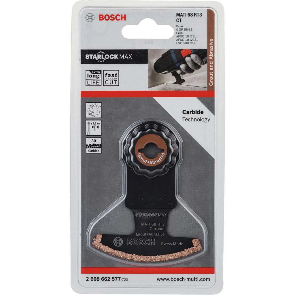 Karbidový segmentový pílový list Grout and Abrasive (Carbide-RIFF)Aby sme mohli všetkým používateľom po celom svete ponúknuť jednotný upínací systém pre multifunkčné náradie, vytvorila firma Bosch systémový štandard: Starlock Max, trojrozmerný rýchloupínací systém typu SDS
