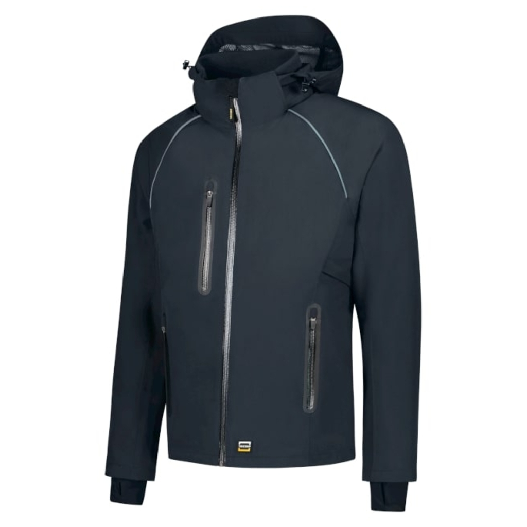 vodeodolný, vetruodolný a priedušný materiál, rovný strih s bočnými švami, podšívka zo sieťoviny, odnimateľná kapucňa, kapucňa a dolný lem na stiahnutie elastickou šnúrkou, celozapínací vodeodolný zips YKK s krytkou brady, ventilácia v podpazuší na zips, manžety s otvorom pre palec, vrecká na zips YKK, podlepené švy, reflexné prvky, certifikácia podľa noriem EN 343:2019 (trieda 4:3) , Tricorp číslo produktu: 402018