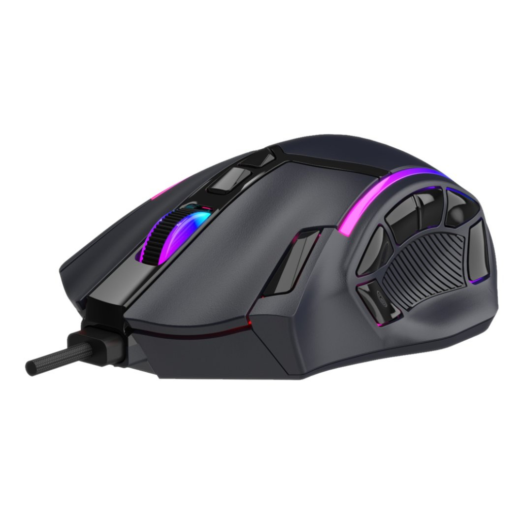 Dizajn myši je ergonomicky tvarovaný a protišmykové prvky na bokoch a rolovacom koliesku zabezpečujú pevné uchopenie aj počas najintenzívnejších herných momentov. Vďaka tomu vám myš dokonale padne do ruky a poskytne vám maximálnu kontrolu nad každým pohybom.