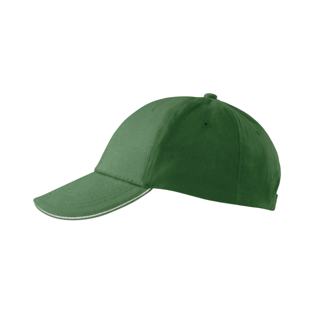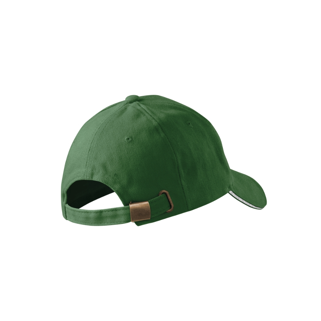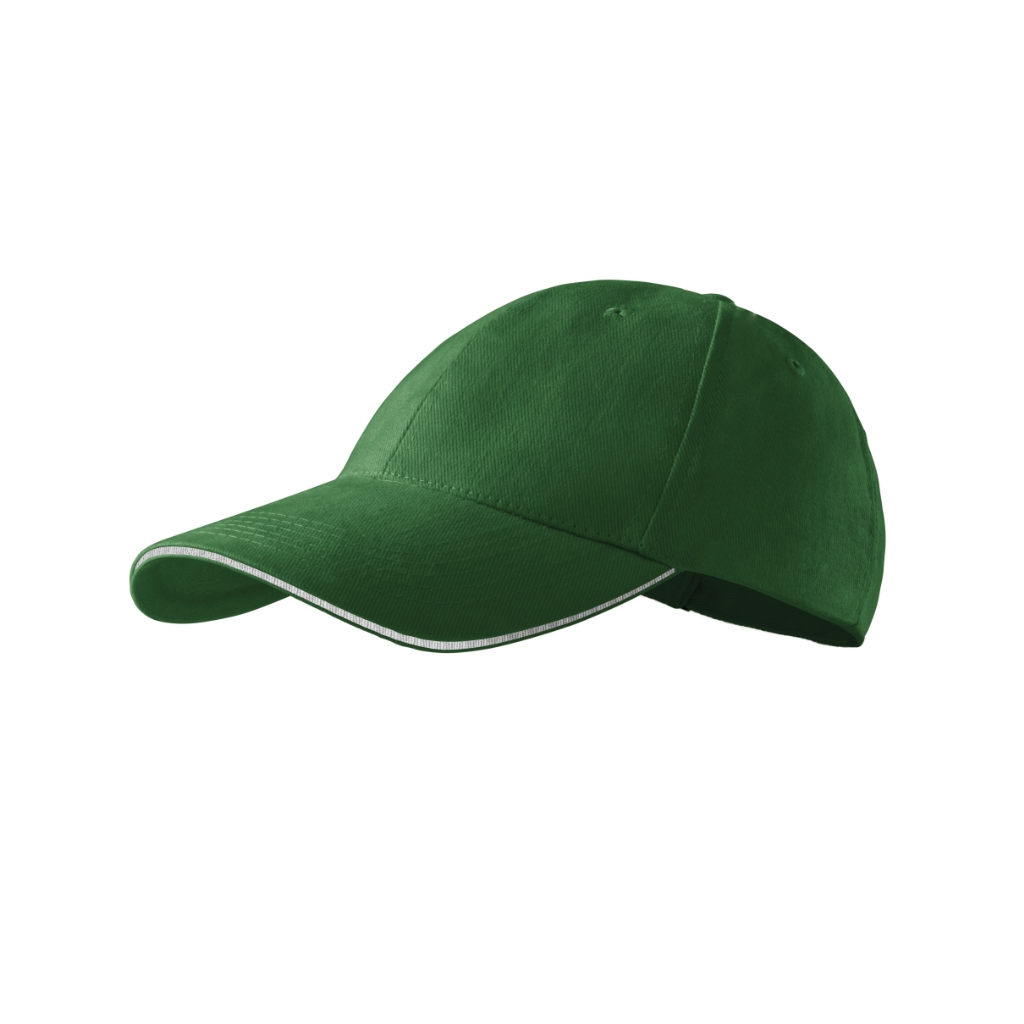 šesťpanelový strih, vystužené 2 predné panely, prešívaný, zľahka prehnutý šilt s kontrastným pásikom, obšité vetracie otvory, potiaca páska, veľkosť nastaviteľná mosadzným cvokomDodatočné parametre