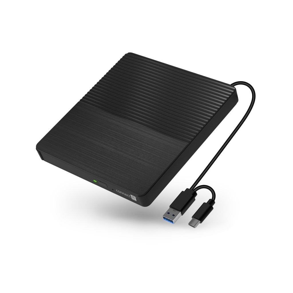 Ak vlastníte notebook, ultrabook alebo netbook, toto malé zariadenie je presne to, čo potrebujete. Môžete ho použiť na inštaláciu softvéru alebo na vytváranie záloh. Externá napaľovačka diskov CD/DVD SlimDrive od spoločnosti CONNECT IT je napájaná z portu USB-C / USB-A, takže nepotrebujete žiadny napájací adaptér. Je len o niečo väčšia ako disk DVD a ľahko sa zmestí do vrecka batohu alebo tašky, takže ju môžete mať vždy so sebou.