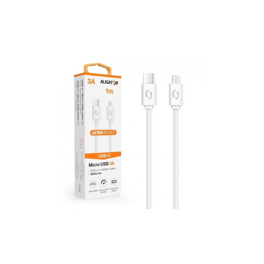 Dátový kábel ALIGATOR POWER 3A, USB-C/micro USB 1m biely DATKP42