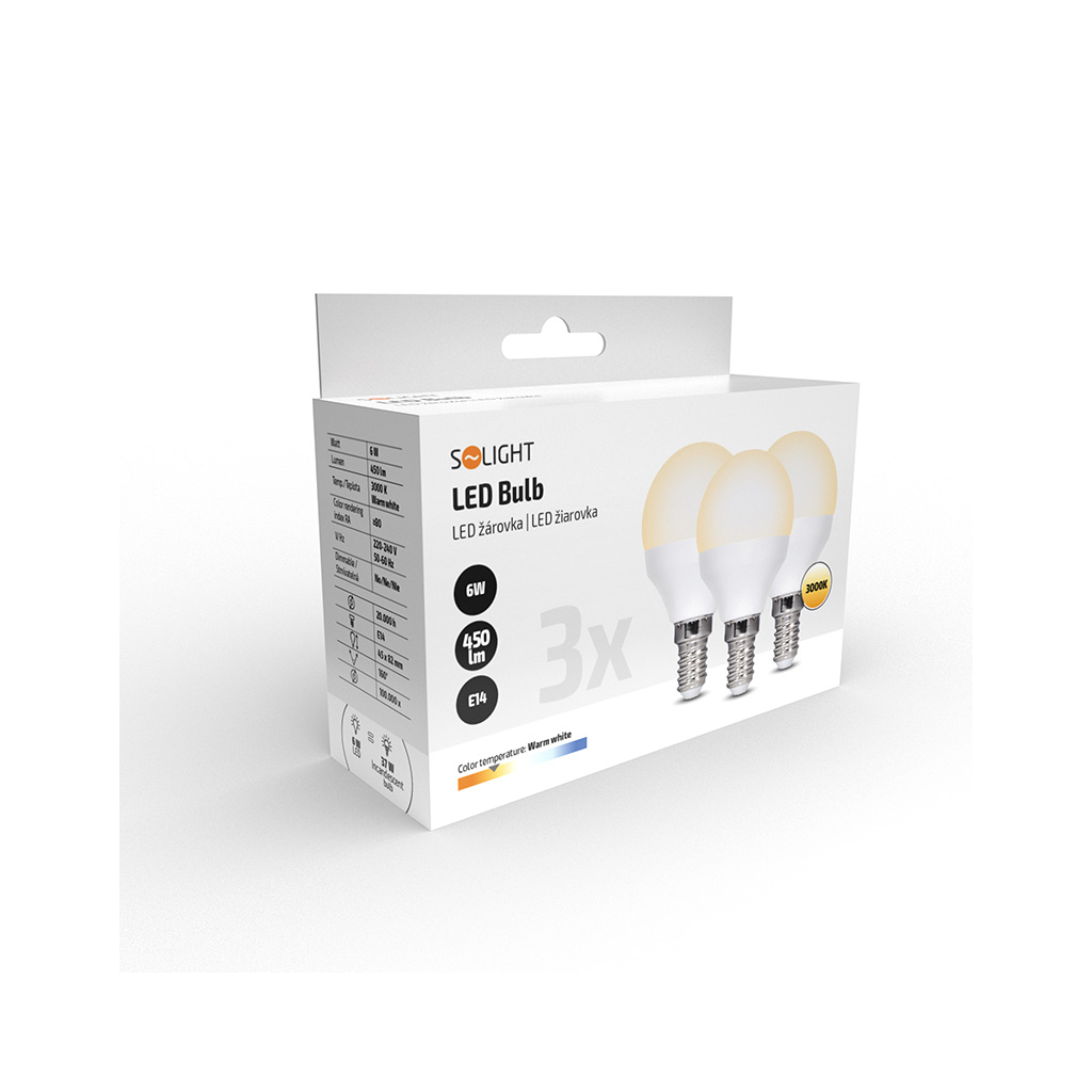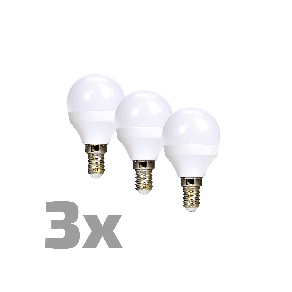 ECOLUX LED žiarovka Ecolux 3-pack, miniglobe, 6W, E14, 3000K, 450lm, biele prevedenie, 3ks