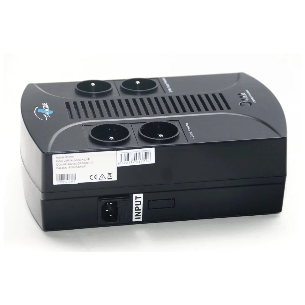 Záložní zdroj typu Line Interactive EA200plus EVO 850 je kompaktní velikosti, přizpůsobený i k zavěšení na stěnu. Zdroj je řízený mikroprocesorem a je vybavený komunikačním rozhraním USB. K tomu slouží dodávaný software pro operační systémy Microsoft Windows.Zařízení disponuje také přepěťovou ochranou a ochranou telefonní linky s RJ-11 konektorem.