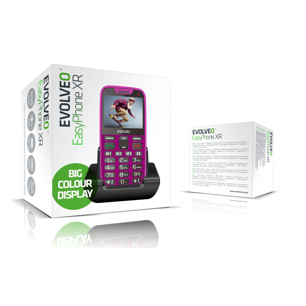 Ovládanie telefónu EVOLVEO EasyPhone XR bolo čo najviac zjednodušené, aby vyhovovalo potrebám seniorov a detí. Veľké čísla a písmená sú na veľkom 2,3" farebnom displeji TFT dokonale čitateľné, čo zabezpečuje jednoduchú navigáciu a čitateľnosť informácií. Jednotlivé tlačidlá klávesnice sú oddelené, čo uľahčuje písanie textových správ a zadávanie telefónnych čísel. Pre ešte väčšie pohodlie pri používaní telefónu sú na prednej strane telefónu 3 vyhradené tlačidlá, ktoré umožňujú rýchly prístup k dôležitým funkciám, napríklad k fotoaparátu.