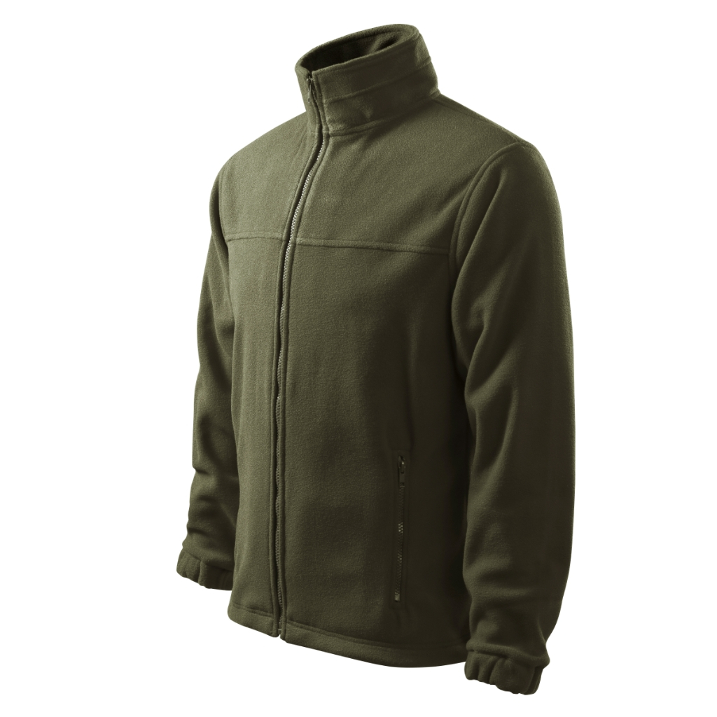 hrejivý materiál, vnútorný priekrčník začistený páskou vo farbe povrchového materiálu, celozapínací kostený zips, vrecká s kosteným zipsom, dolný lem na stiahnutie elastickou šnúrkou, lemy rukávov stiahnuté pruženkou, antipilingová úprava z vonkajšej strany