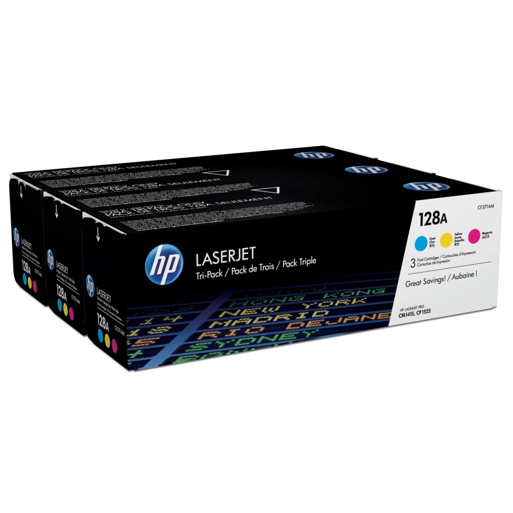 HP 128A Tri-pack - CF371AM - kazeta s barvivem - žlutá,azurová,purpurováTyp spotřebního zboží Kazeta s barvivem