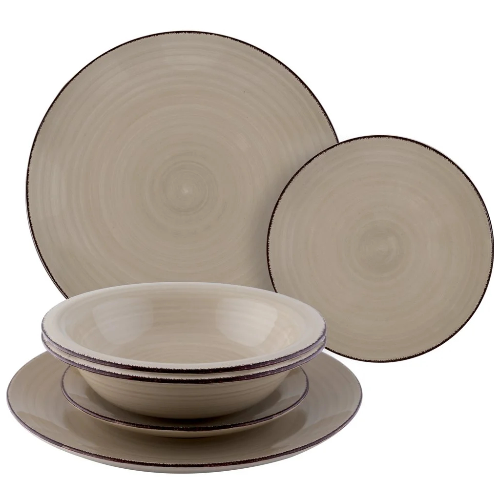 Podávajte svoje obľúbené cestoviny, polievku alebo aj chrumkavý šalát v krásnych keramických tanieroch a vychutnajte si každé sústo o niečo viac.Taniere okrúhleho tvaru s jemnou linkou po obvode v hnedej farbe budú tiež krásnym kúskom na prestretý stôl, či už na každodenné bežné stolovanie alebo obed. Súprava je určená pre dve osoby.