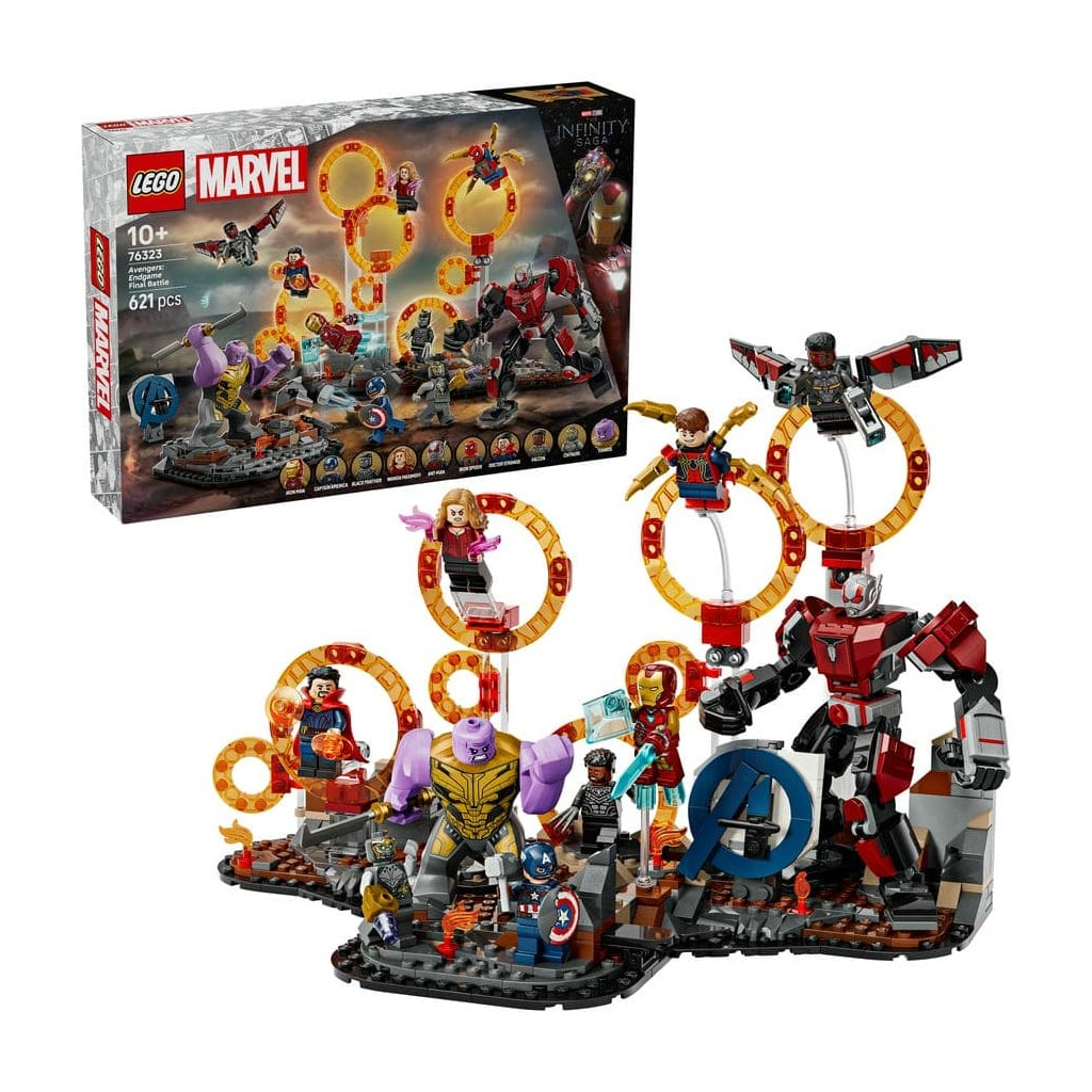 Táto sada zobrazuje ikonickú bitku z filmu Marvel Avengers: Endgame. Obsahuje medzidimenzionálne portály vytvorené pomocou dvojprstového prstenca a 9 minifigúrok, ako sú Kapitán Amerika so štítom, Iron Man MK85 s mečom a štítom, Chitauri s vystreľovačom rúk, Ant-Man, Scarlet Witch s plameňmi, Doctor Strange, Iron Spider so 4 pohyblivými "nohami" na chrbte, Black Panther a Falcon s 2 vystreľovačmi. Deti sa môžu tešiť na veľkú figúrku Thanosa, plne pohyblivý robotický oblek Ant-Mana a 2 vybuchujúce skalné prvky pre úžasnú akciu superhrdinov.