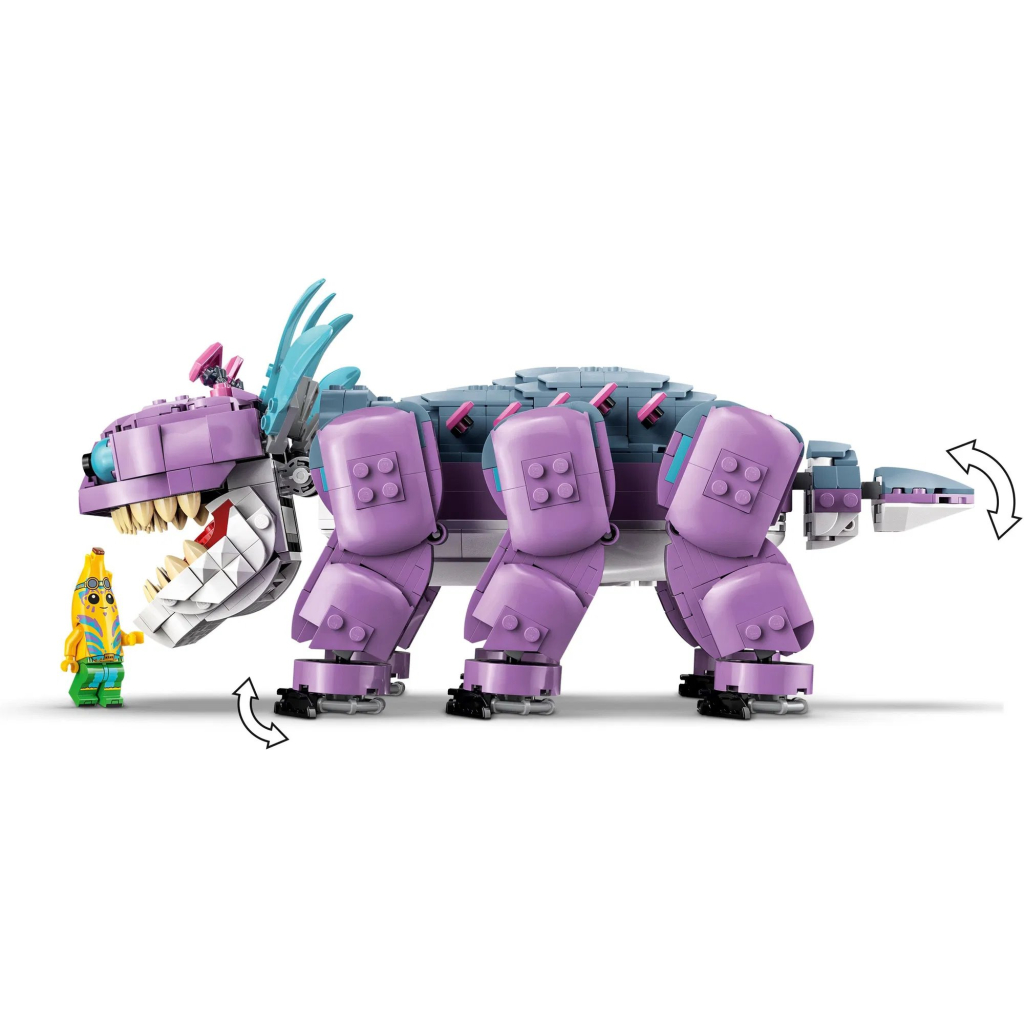 Fanúšikovia a hráči od 10 rokov si môžu postaviť ikonickú postavu LEGO® Fortnite® Klombo so sadou LEGO® Fortnite® (77077). Klombo je veľké stvorenie z videohry LEGO Fortnite a s touto sadou si ho dievčatá a chlapci môžu postaviť z kociek LEGO. Deti si užijú veľa zábavy pri stavaní modelu podľa videohry Fortnite a objavia všetky jeho skvelé detaily vrátane pohyblivých nôh, otváracej tlamy a otáčajúceho sa chvosta. Súčasťou stavebnice je aj malý klomberový krík s odnímateľnými klombermi. Deti sa môžu hrať na vyrušovanie Klomba, aby ho nahnevali, a potom ho kŕmiť ovocím, aby sa s Klombom udobrili. Stavebnica obsahuje aj minifigúrky Peelyho a Oroa z Ostrovného dobrodružstva, ktoré možno pripojiť ku Klombovmu chrbtu a kreatívne sa tak hrať s postavičkami. Táto úžasná súprava zvieratiek poslúži ako skvelý darček pre hráčov všetkých vekových kategórií a obsahuje skvelý digitálny bonusový predmet. Hráči naskenujú QR kód v návode na zostavenie a odomknú tak oblečenie pre ostrovnú dobrodružku Peely vo videohre LEGO Fortnite. Súprava obsahuje 1 084 dielikov.Dodatočné parametre