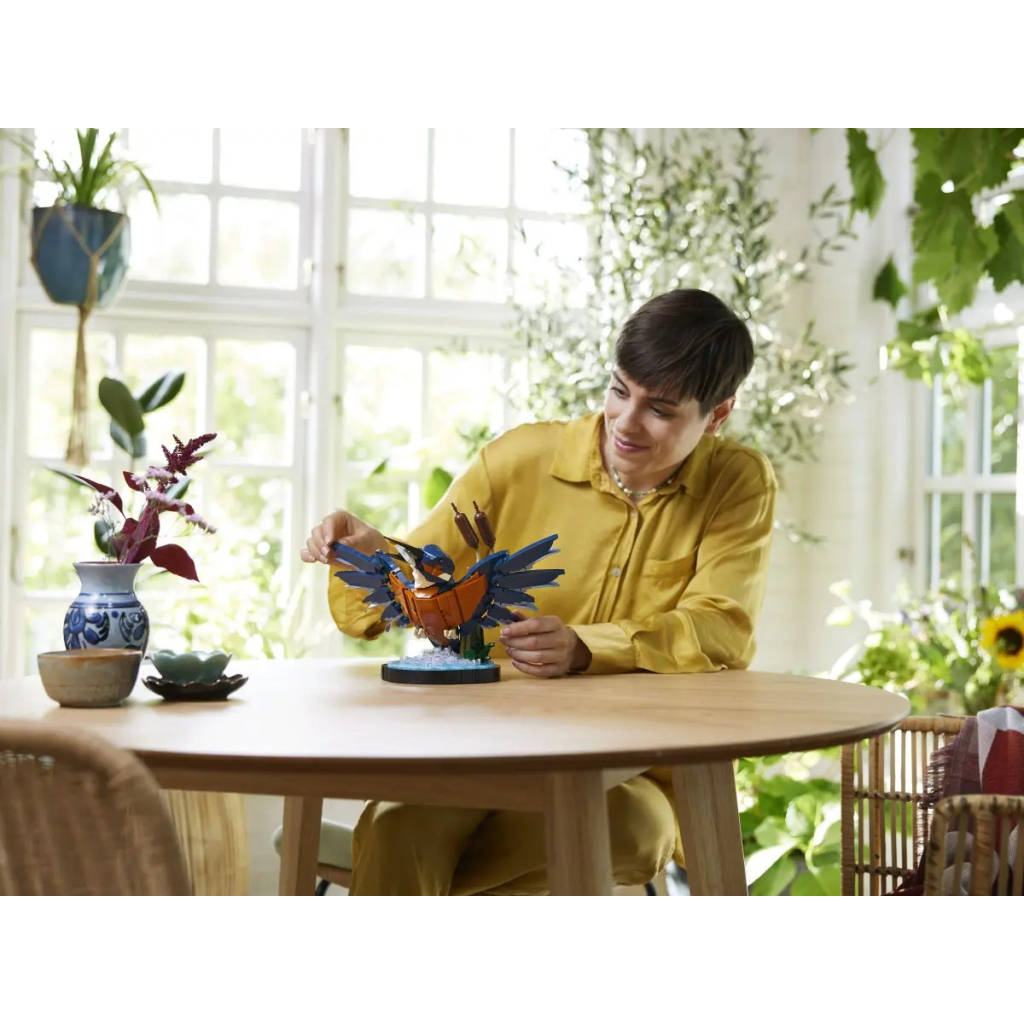 Vytvorte si pútavý kúsok do svojho domova alebo kancelárie pomocou tejto dekoratívnej sady pre dospelých. Súprava 10331 LEGO® Icons Kingfisher je skvelý darček pre milovníkov vtákov. Predstavuje projekt, do ktorého sa ponoria noví aj skúsení stavitelia LEGO.Model zubáča kráľovského predstavuje vtáka známeho svojím zvláštnym perím a pozoruhodnými loveckými schopnosťami, pri ktorých sa vynára z vody so svojím úlovkom. Vodné pozadie obsahuje zostaviteľný rákos a môže sa použiť ako stojan. Nastavte hlavu a pazúry a vytvorte si obľúbenú pózu. Potom umiestnite vtáka na výstavu, aby si ho mohli všetci vychutnať.