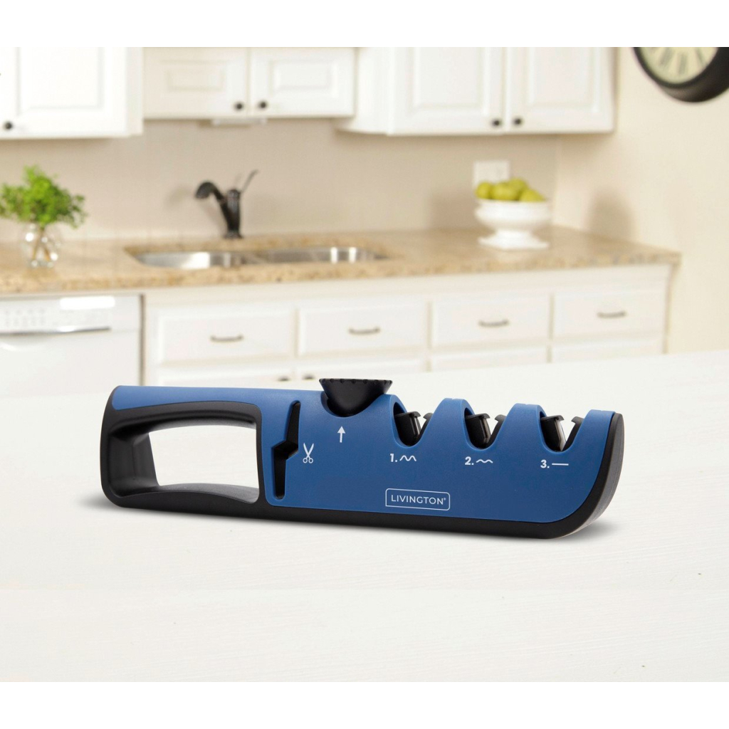 Originál známy z televízie!Livington Blade Star s tromi inovatívnymi otvormi na ostrenie je ideálny pre rôzne typy nožov. Vďaka zabudovanému brúsku na nožnice je ideálny aj na
