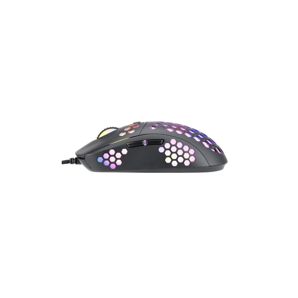 Veľkou výhodou tejto hernej myši je jej hmotnosť. Vďaka perforovanému dizajnu pripomínajúcemu včelie plásty (Honeycomb design), ktorý zároveň dodáva myši jedinečný vzhľad, je jej hmotnosť len 76 gramov. Preto sa s ňou počas hrania hier ľahšie manipuluje. Pri dlhodobej práci a hraní nebudete pociťovať únavu. Ergonomický tvar zaisťuje oporu dlane, čo je veľkou výhodou. Podsvietenie RGB bude príjemné na pohľad.