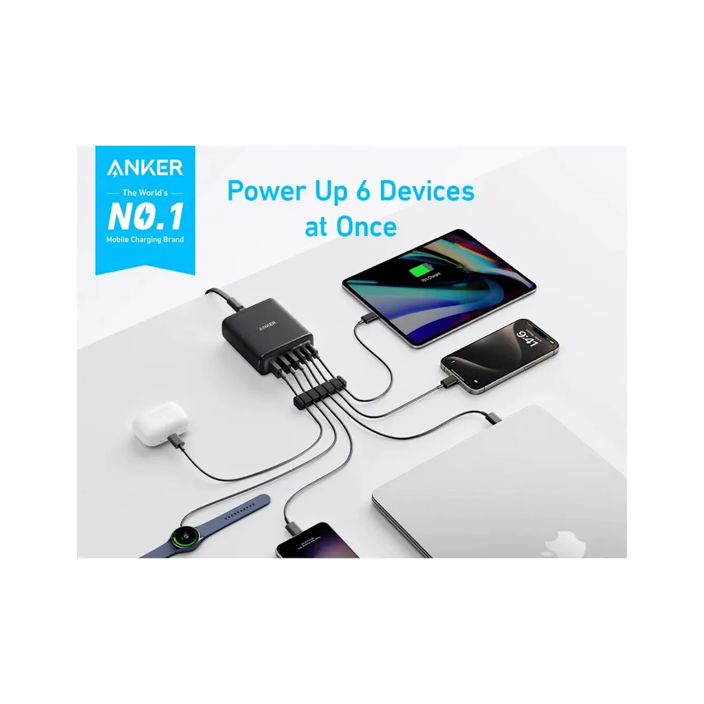 Nabíjacia stanica Anker 112W 3xUSB-C, 3xUSB čierna