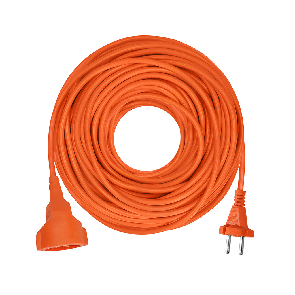 Oranžový prodlužovací kabel s délkou 25 metrů a jednou zásuvkou je ideální k prodloužení elektrické energie na zahradě nebo v dílně. Vhodný pro připojení zařízení s dvoupólovou neuzemněnou vidlicí přívodní sňůry, kterými je většina elektrických nástrojů. Barevné odlišení od okolního prostředí zvyšuje bezpečnost při práci.