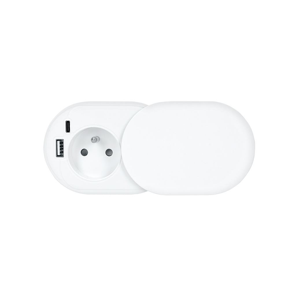 Posuvné viečko v matnom bielom prevedení pôsobí elegantne a nenápadne, najmä v bielom nábytku. Posuvný mechanizmus chráni zásuvku aj nabíjacie porty pred prachom a nečistotami. Navyše je možné odhaliť len USB porty a sieťovú zásuvku ponechať zakrytú. Zakryté viečko zachováva čistý vzhľad pracovnej plochy.