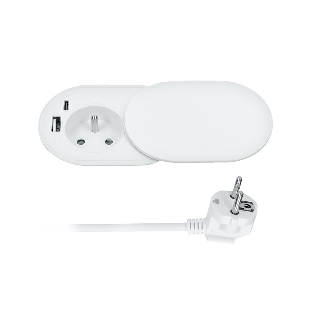Táto vstavaná zásuvka kombinuje klasickú sieťovú zásuvku 230 V s moderným USB rýchlonabíjaním USB-C a USB-A. Vďaka tomu ľahko nabijete telefón, tablet alebo iné zariadenia bez potreby samostatných adaptérov. Ideálne pre pracovné stoly, kuchyne aj nočné stolíky.