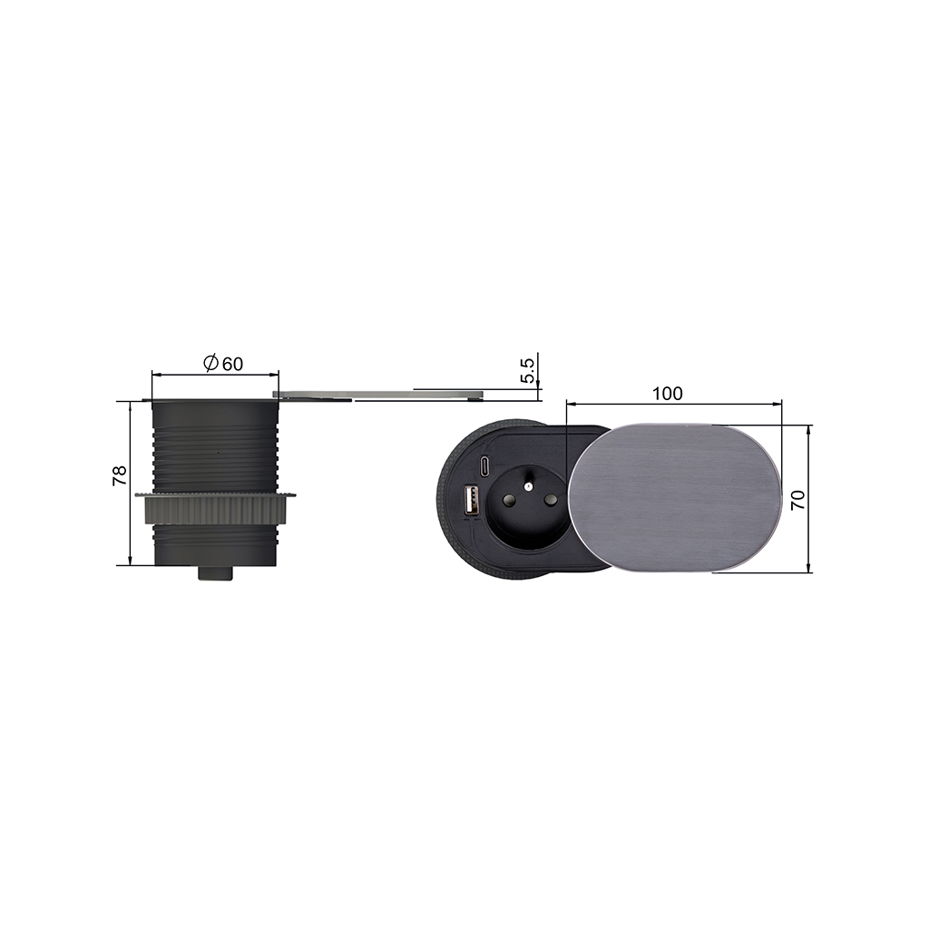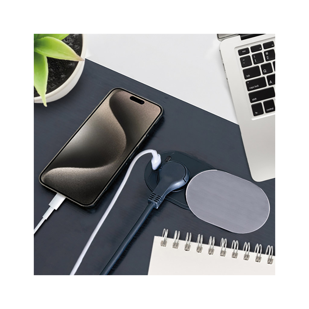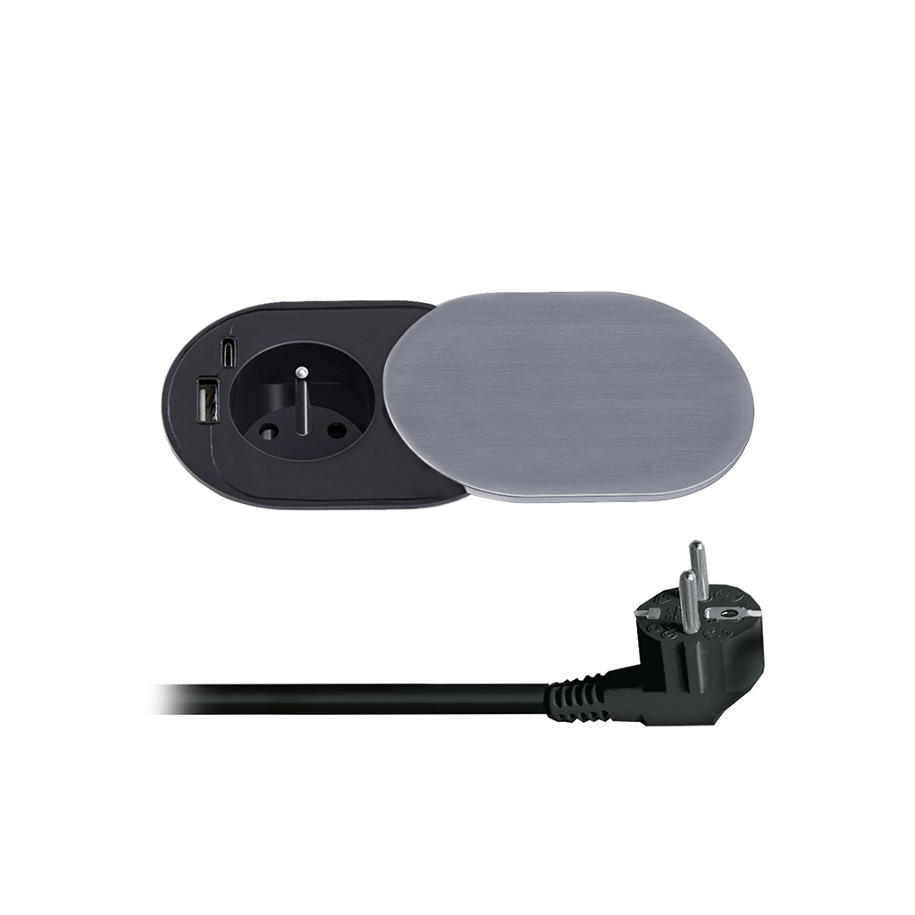 Táto vstavaná zásuvka kombinuje klasickú sieťovú zásuvku 230 V s moderným USB rýchlonabíjaním USB-C a USB-A. Vďaka tomu ľahko nabijete telefón, tablet alebo iné zariadenia bez potreby samostatných adaptérov. Ideálne pre pracovné stoly, kuchyne aj nočné stolíky.