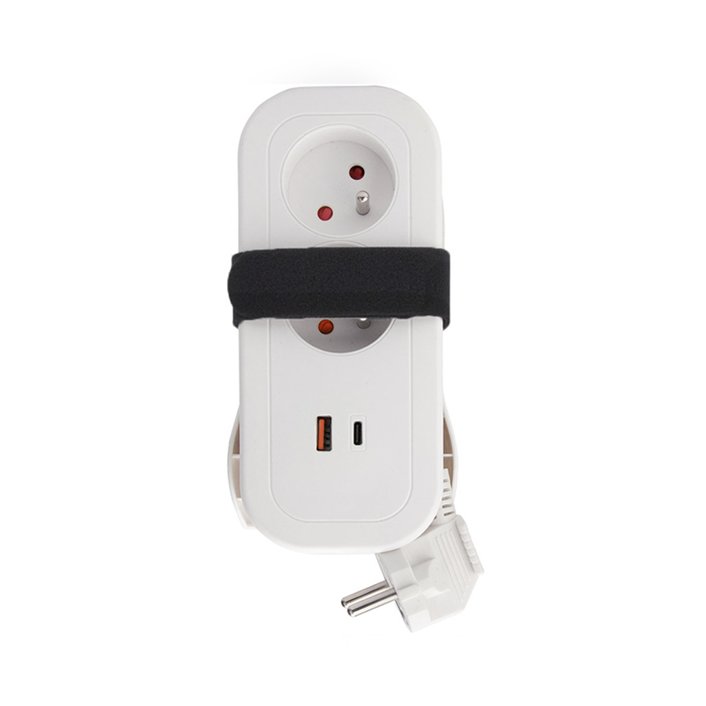 - Predlžovací napájací kábel s dvoma zásuvkami a USB rýchlonabíjačkou. Skladný, výkonný, ľahko prenosný. Ideálny na nabíjanie elektronických zariadení na cestách.