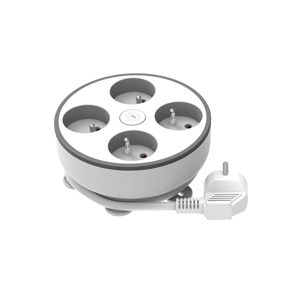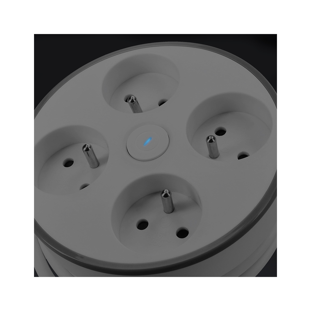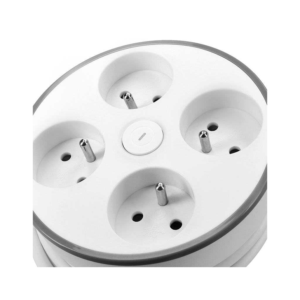 - Predlžovací prívod s kruhovým zásuvkovým poľom pre domácnosť i kanceláriu. Kábel je možné navinúť na podstavec na uschovanie nevyužitej dĺžky alebo navinúť celý pri skladovaní. Podstavec zaisťuje stabilitu a je možné ho pripevniť do pracovnej dosky alebo na stenu vďaka montážnemu úchytu. Podsvietený vypínač ovláda všetky zásuvky.