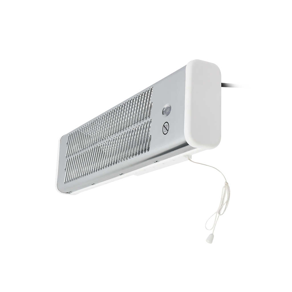 1200W infračervený ohrievač s dvoma úrovňami výkonu (600 W / 1200 W) a krytím IP24, vhodný do kúpeľní a vlhkých priestorov. Účinne ohrieva predmety pred vami, nie okolitý vzduch. Možno ho nakloniť o 50° pre optimálny smer ohrevu. Ovládanie pomocou kábla, kompaktný dizajn. Vhodný pre miestnosti do 30 m3. Napájanie 230 V/50 Hz.