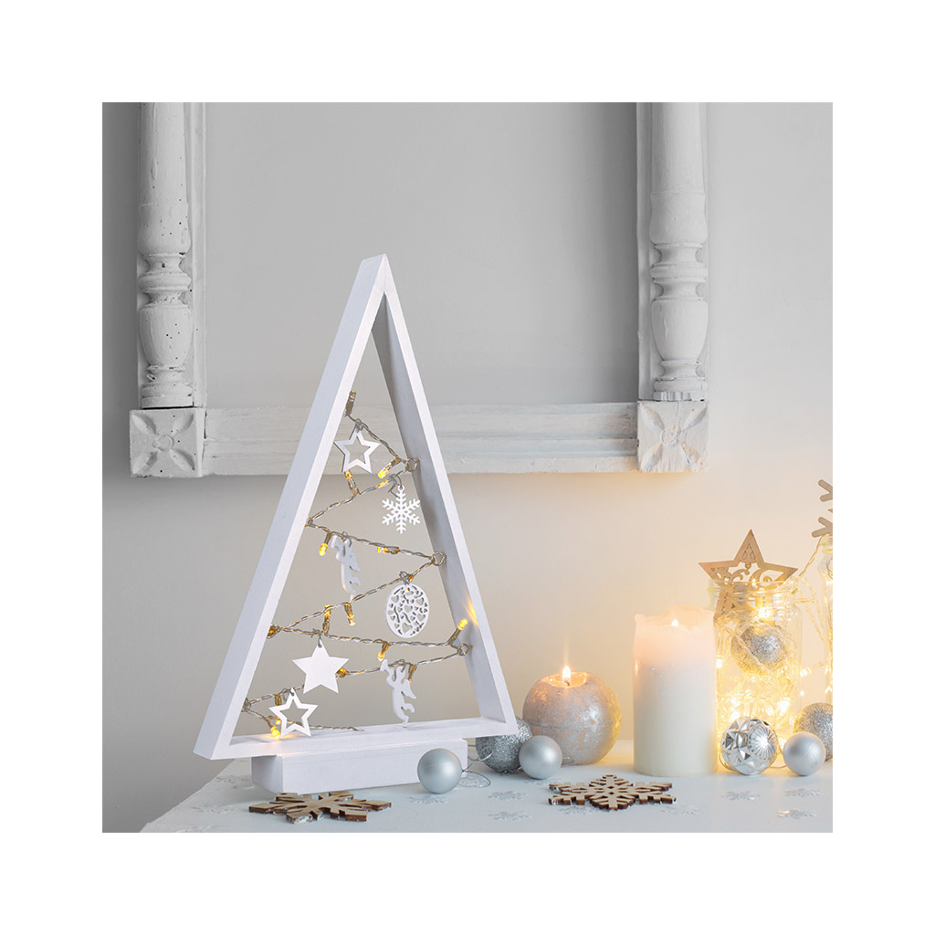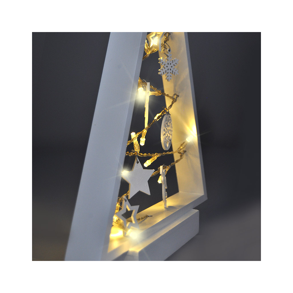 - LED drevený vianočný stromček s ozdobami