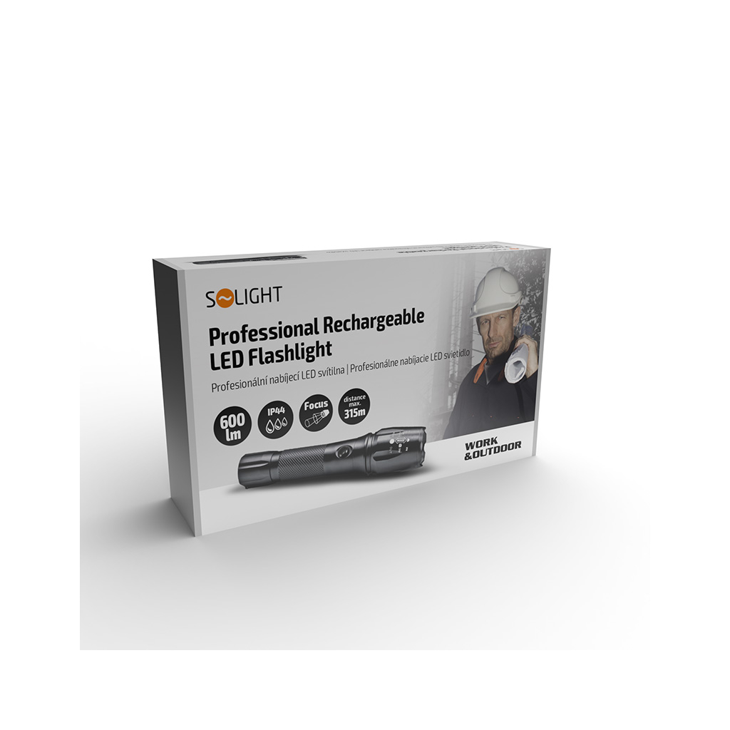 Solight LED nabíjacie profesionálne svietidlo, 600lm, T6 XML Cree LED, zoom, Li-Ion + DARČEK Delta Plus Zátky do uší 1 pár CONICPLUS001