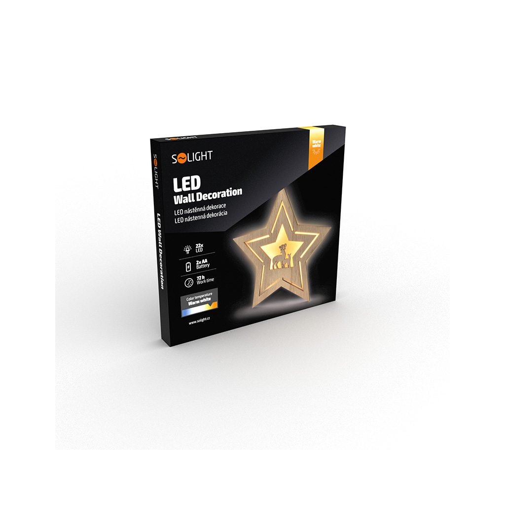 Solight LED nástenná dekorácia vianočná hviezda, 24x LED, 2x AA + DARČEK Delta Plus Zátky do uší 1 pár CONICPLUS001