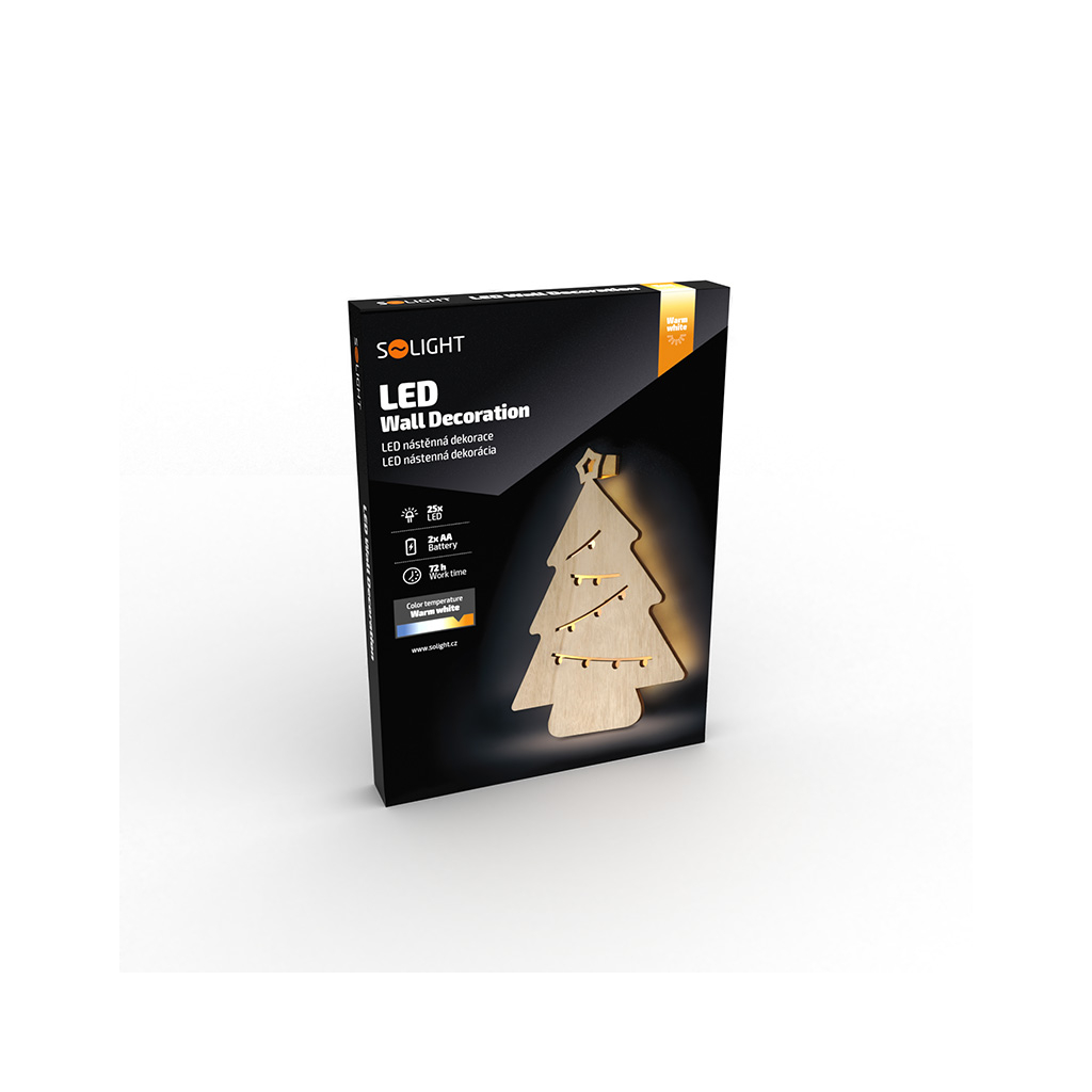 Solight LED nástenná dekorácia vianočný stromček, 24x LED, 2x AA + DARČEK Delta Plus Zátky do uší 1 pár CONICPLUS001