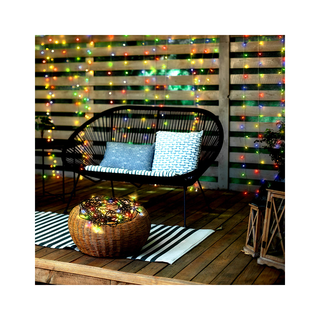 Svetelná reťaz s 300 rôznofarebnými LED diódami rozžiari váš domov alebo záhradu hravým a živým svetlom. Vďaka ôsmim rôznym svetelným režimom vrátane blikania, miešania alebo stálej žiary môžete ľahko meniť atmosféru podľa aktuálnej nálady. Ideálne sa hodí na zdobenie stromčekov, pergol, fasád alebo vnútorných priestorov, kde dodá skutočný slávnostný nádych.