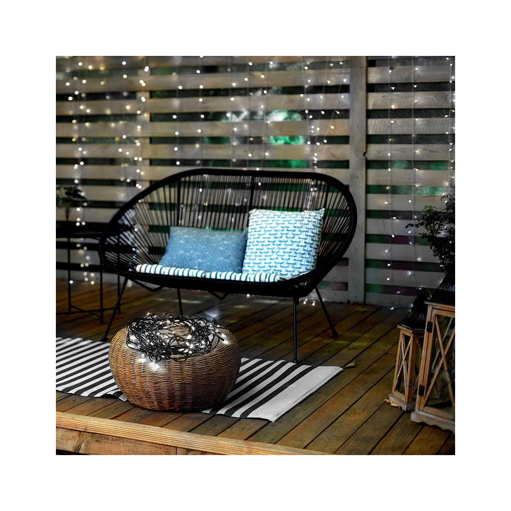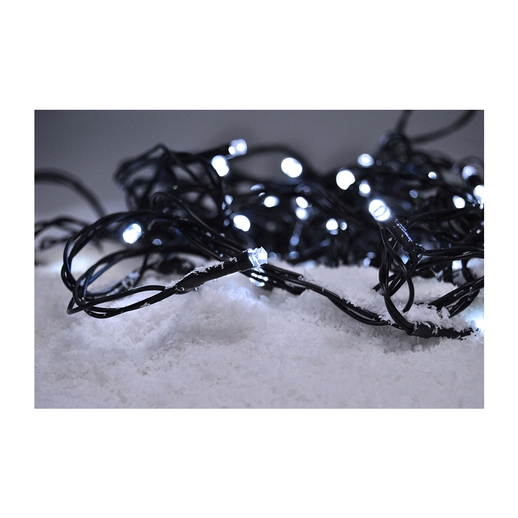 Vytvorte elegantnú svetelnú atmosféru s touto LED reťazou obsahujúcou 300 studených bielych LED diód. Jej jemne chladné svetlo je ideálne pre moderné dekorácie, zimné prostredie a nenápadné sviatočné dekorácie. Vďaka ôsmim svetelným režimom si môžete ľahko vybrať efekt, ktorý vám najviac vyhovuje - od jemného prelínania až po energické blikanie.