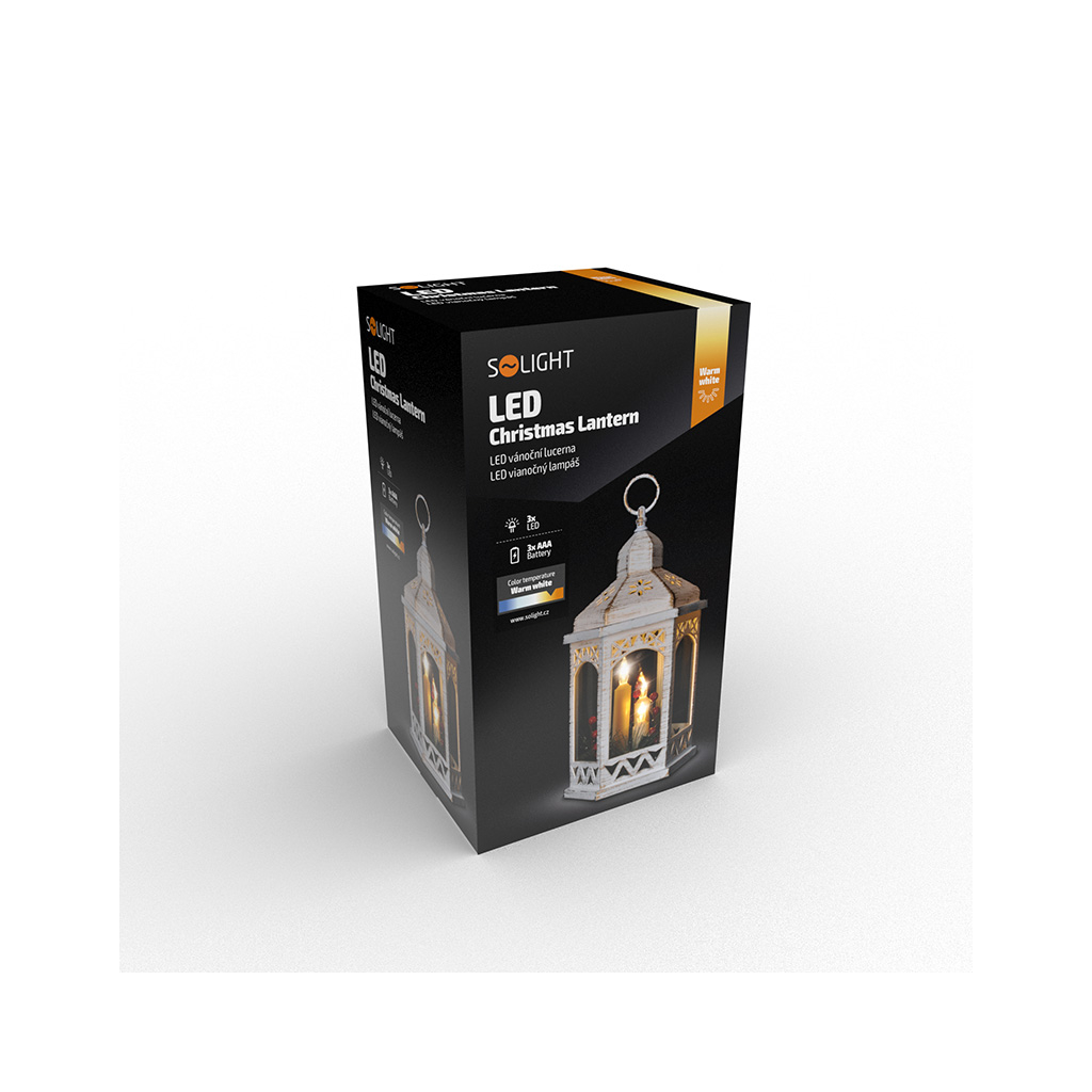 Lampáš meria 33 × 18 × 16 cm a je vyrobený z ľahkého, ale odolného plastu. Je napájaný tromi batériami AAA (nie sú súčasťou balenia), pričom výdrž batérií je až 100 hodín. K dispozícii je aj časovač na 6 h/18 h, ktorý zabezpečuje pohodlnú automatickú prevádzku bez nutnosti každodenného zapínania. Určený na použitie v interiéri (IP20). Vďaka baleniu vo farebnej škatuli je aj skvelým darčekovým predmetom. Skvelý doplnok k tradičnej aj modernej vianočnej výzdobe.