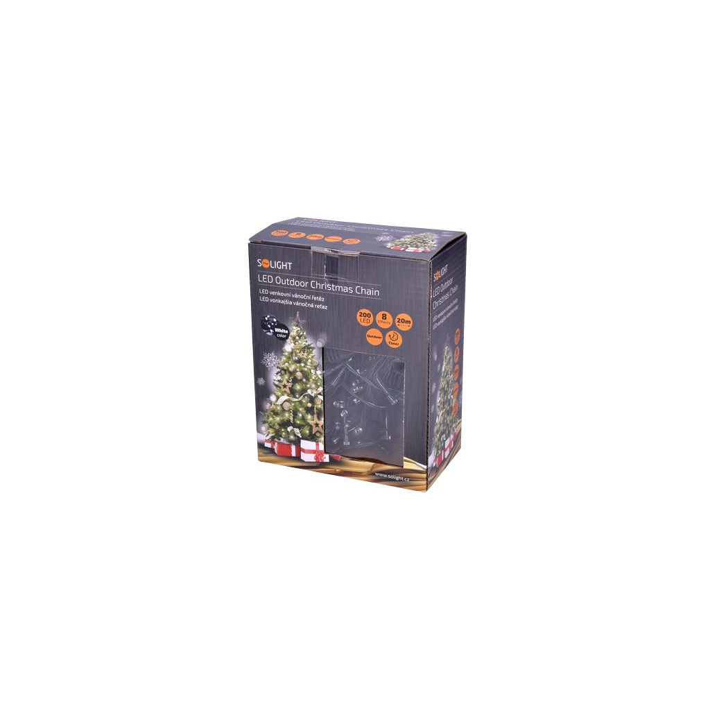 Solight LED vonkajšia vánočná reťaz, 200 LED, 20m, prívod 5m, 8 funkcií, časovač, IP44, studená biela + DARČEK Delta Plus Zátky do uší 1 pár CONICPLUS001