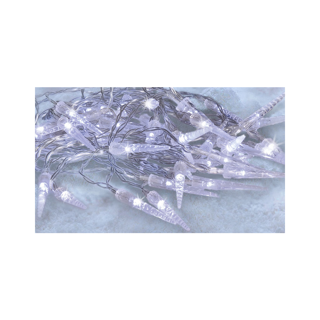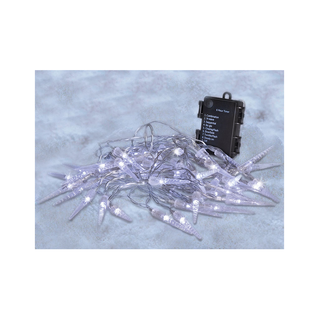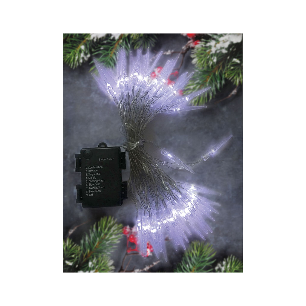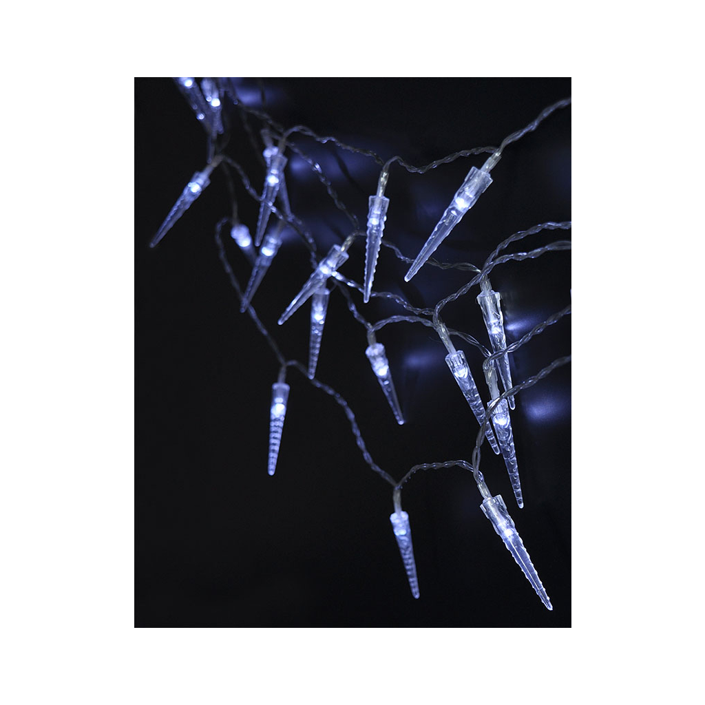 Stožiare sú ideálne na použitie v interiéri aj exteriéri, majú stupeň krytia IP44, sú napájané tromi batériami AA (nie sú súčasťou balenia) a v závislosti od ich kvality vydržia svietiť až 72 hodín. Vďaka integrovanému časovaču sa po 6 hodinách svietenia automaticky vypnú a po 18 hodinách sa opäť zapnú. Celková dĺžka svietiaceho kábla je 7,5 m s 50 cm prívodným káblom. Priehľadný kábel je nenápadný a ľahko sa začlení do akéhokoľvek interiéru. Výrobok sa dodáva vo farebnej škatuli.