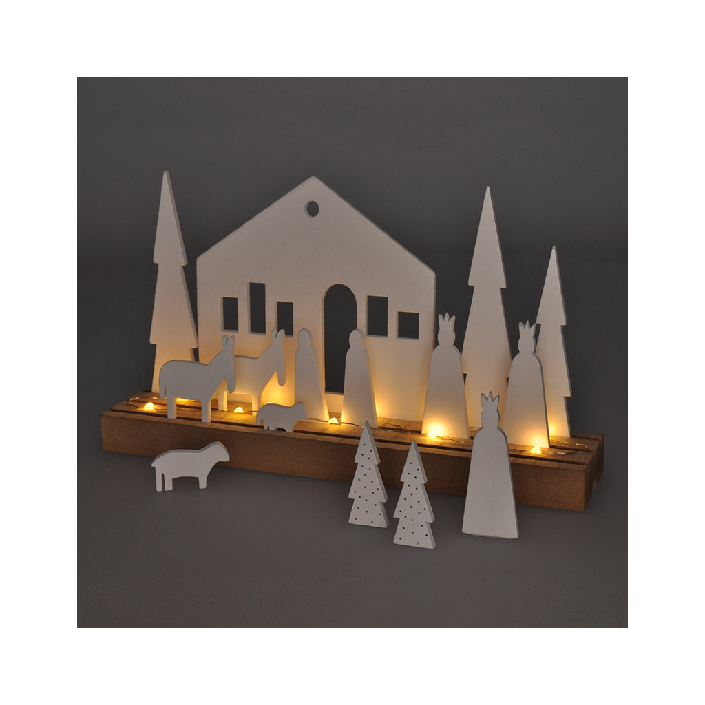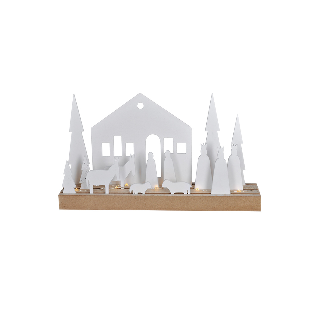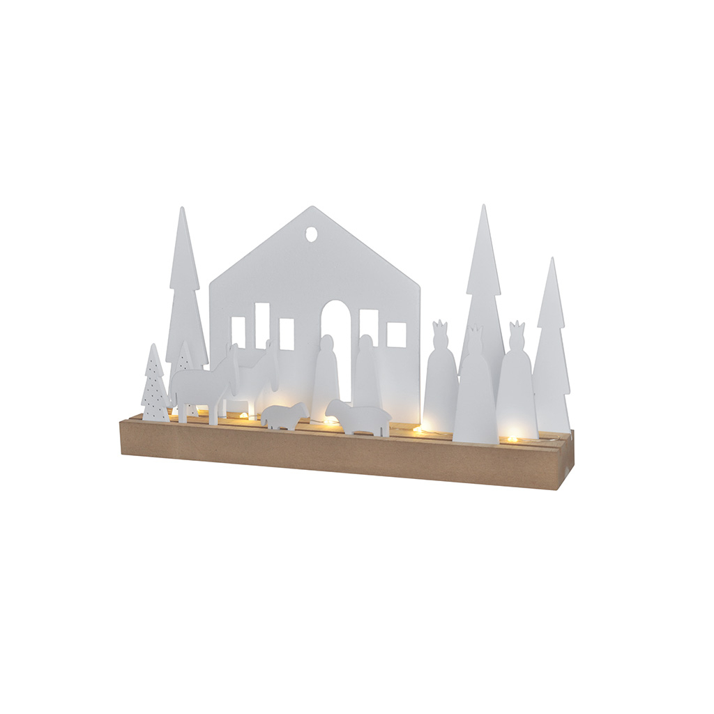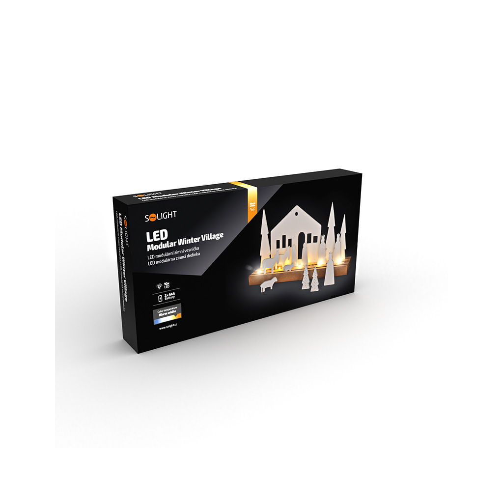 - LED modulárna zimná dedinka so 15 vianočnými prvkami, ktoré je možné umiestniť v ľubovoľnom poradí na základňu
