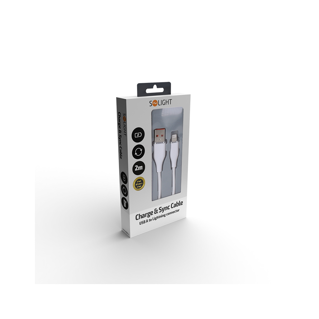 Solight lightning kábel, USB 2.0 A konektor - Lightning konektor, silikón, 2m + DARČEK Delta Plus Zátky do uší 1 pár CONICPLUS001