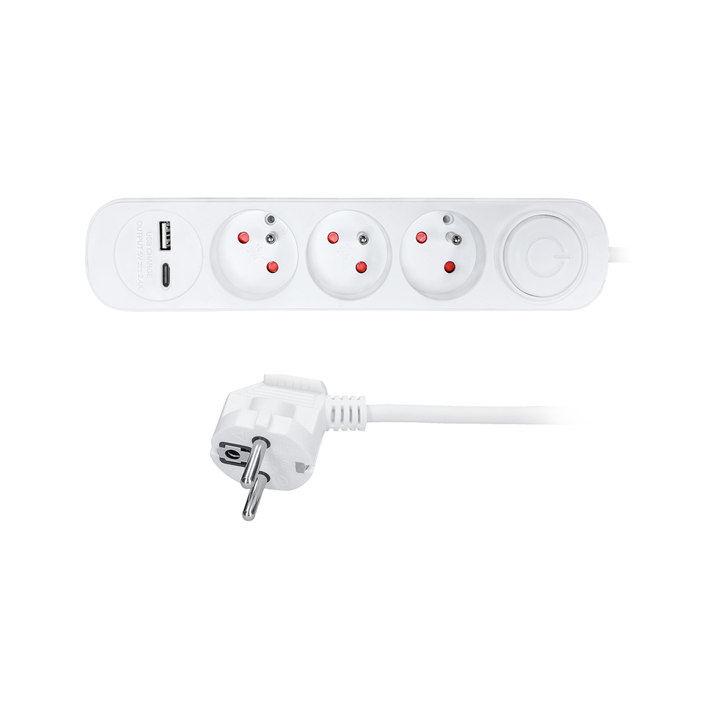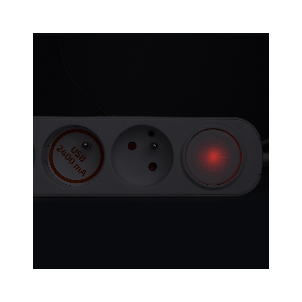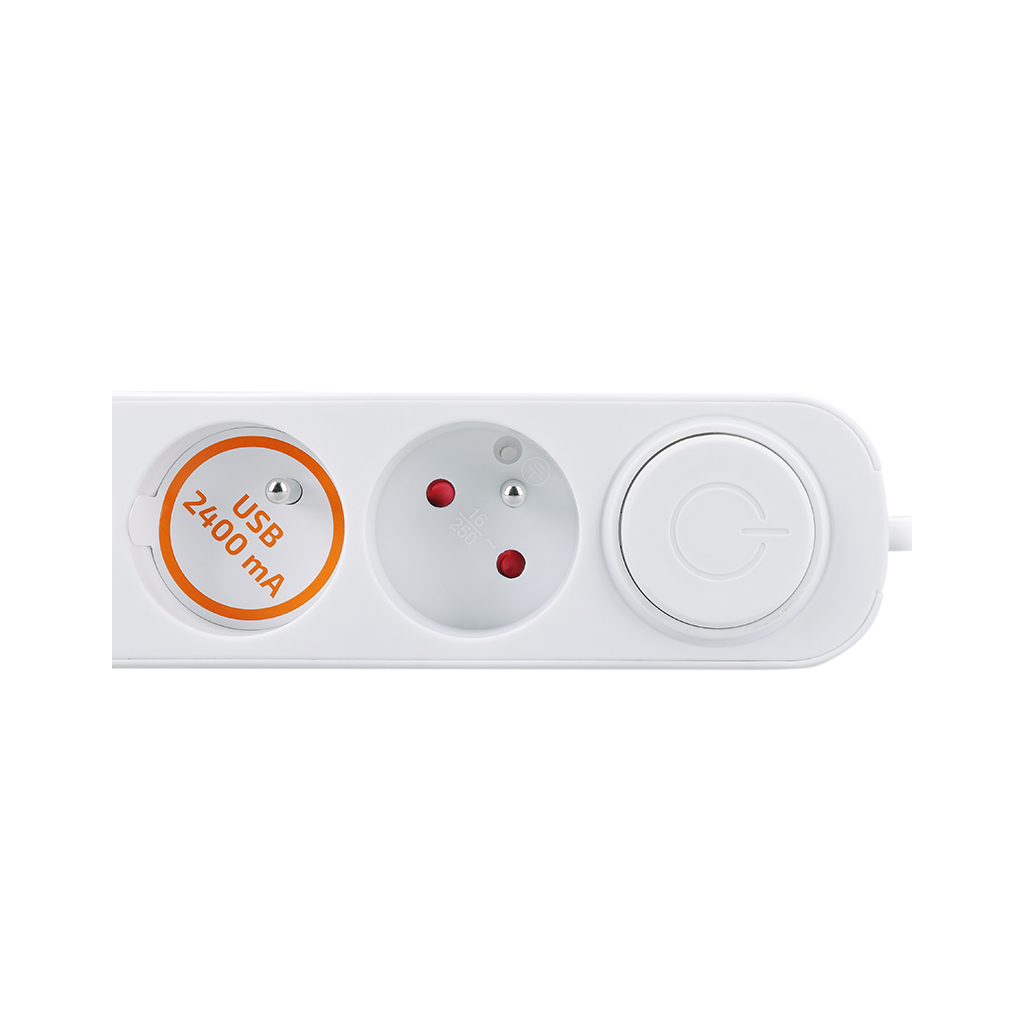 Okrem klasických zásuviek ponúka prívod aj vstavaný USB adaptér s USB-A a USB-C portami, s celkovým výkonom až 12 W. Ľahko tak nabijete telefón, tablet alebo iné zariadenia bez nutnosti hľadať ďalšiu nabíjačku. Veľký podsvietený vypínač umožňuje rýchle odpojenie všetkých pripojených zariadení jedným stlačením.