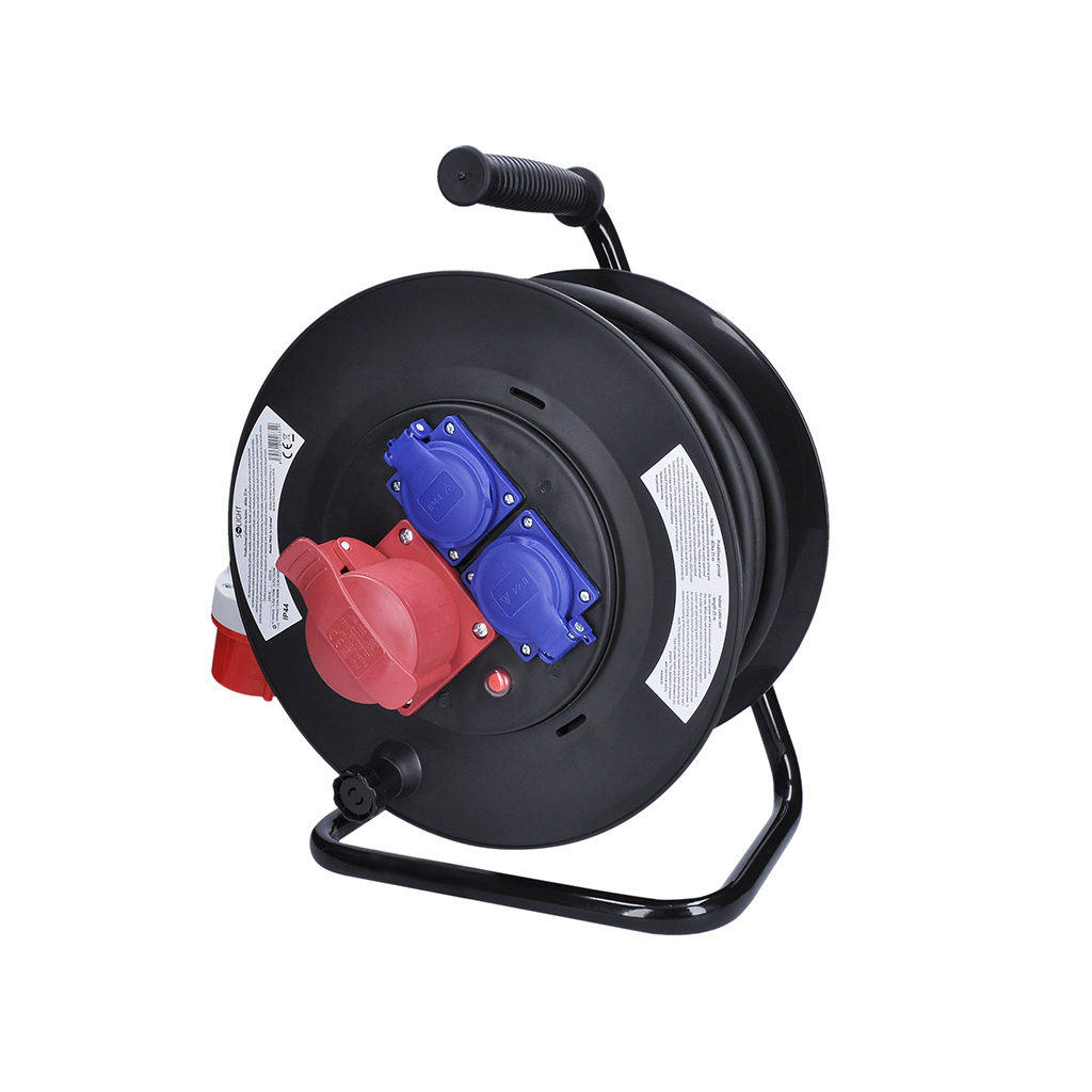 Robustný predlžovací prívod na bubne s dĺžkou 25 metrov, jednou zásuvkou na 400 V a dvoma zásuvkami na 230 V je ideálnou voľbou pre napájanie stavebných strojov, profesionálneho náradia alebo dielenského vybavenia. Vďaka káblu z mäkčenej gumy a krytiu IP44 je vhodný aj do náročných podmienok na stavbách alebo v priemysle. Samovoľnému navíjaniu bráni integrovaná aretačná brzda.