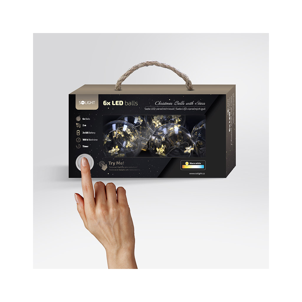 Solight sada LED vianočných gulí s hviezdami, veľ. 8cm, 6ks, 30LED, časovač, tester, 3xAA + DARČEK Delta Plus Zátky do uší 1 pár CONICPLUS001
