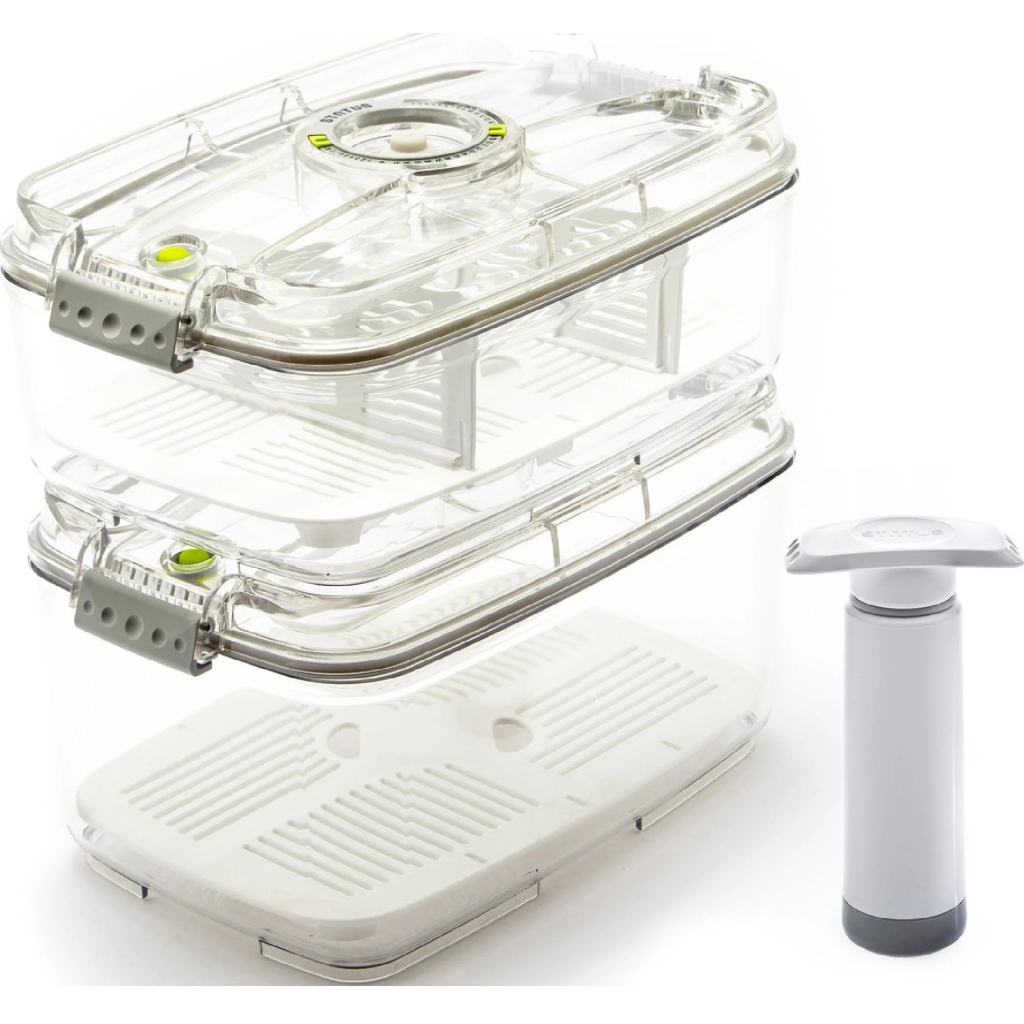 Vákuovacia súprava, vákuový box 3 l / 4,5 l, 2 ks odkvapkávacích častí a priehradiek, ručná vákuová pumpa, vhodné do mikrovlnnej rúry, chladničky, mrazničky, umývačky riadu.Súprava obsahuje: