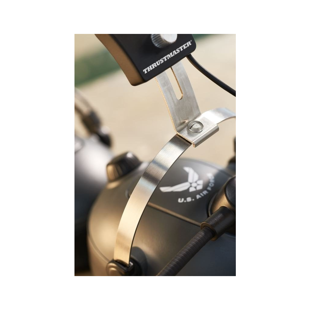Zlatý standardVe spolupráci leteckými silami Spojených států (United States Air Force), Thrustmaster vytvořil vyspělá sluchátka, která jsou schopna splnit přísný protokol pro naplnění oficiální licence. Pro tuto špičkovou organizaci je klíčovým prvkem výkon – použitím 50 mm akustických měničů se stabilní frekvenční křivkou, Thrustmaster dosáhl křišťálově čistého zvuku. Výsledkem je dokonalá rovnováha mezi basovými, středními a vysokými tóny při zkreslení nižším než 1% (např. hladina akustického tlaku byla nastavena na 116±3 dB SPL při 1 mW).